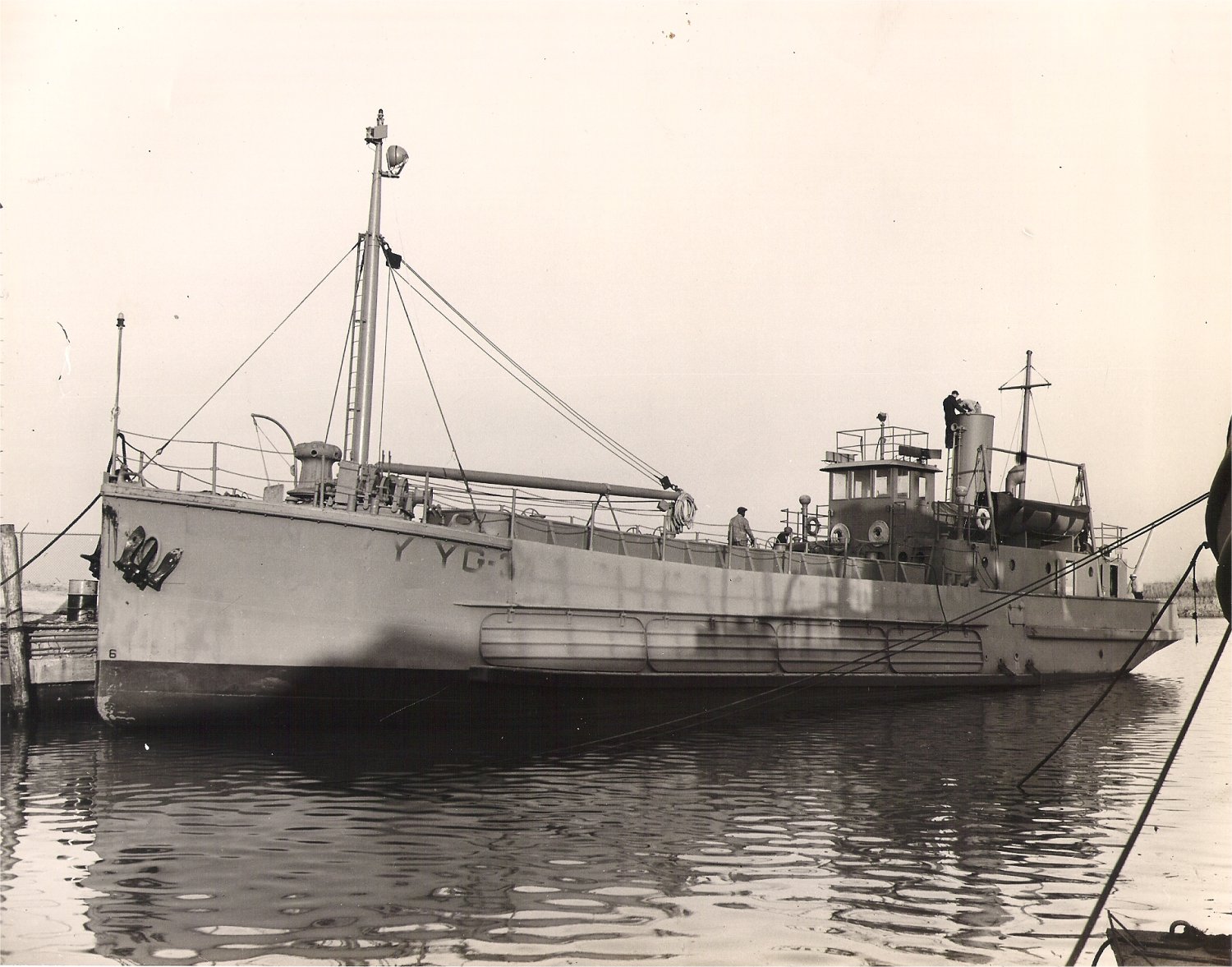 YG-34 in the final stages of fitting out during 1943-44 at Gulfport Boiler and Welding Works, Port Arthur, TX. Gulfport Boiler and Welding Works photo. |