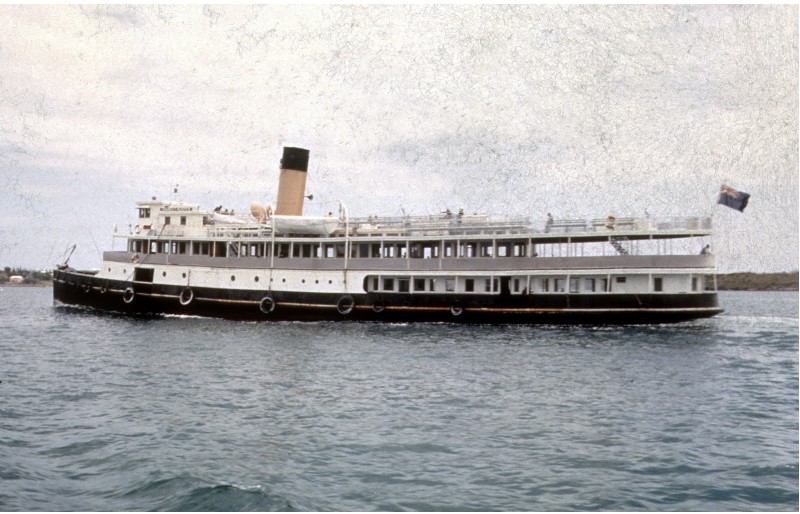Hudson River Dayliner Chauncey M. Depew moored pierside at Hamilton, Bermuda, circa 1950.