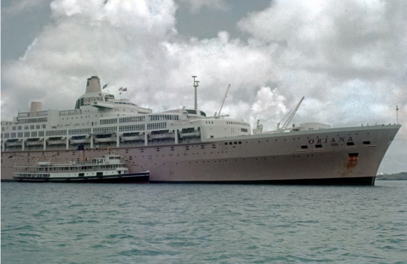 Chauncey M. Depew alongside RMS Oriana at Hamilton, Bermuda, 12 July 1961.