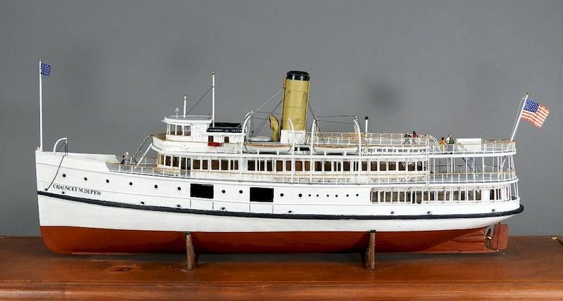 Model of the Narragansett Bay passenger steamer Chauncey M. Depew. Formally Rangeley, the boat was sold to the Hudson River