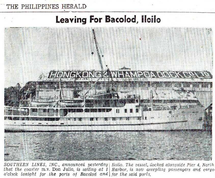 259k Ex-USAV FS-286 in merchant service as the Southern Lines inter island coaster MV Don Jullo, tied up at Pier 4, North Harbor, Manila , P.I., 31 January 1959.