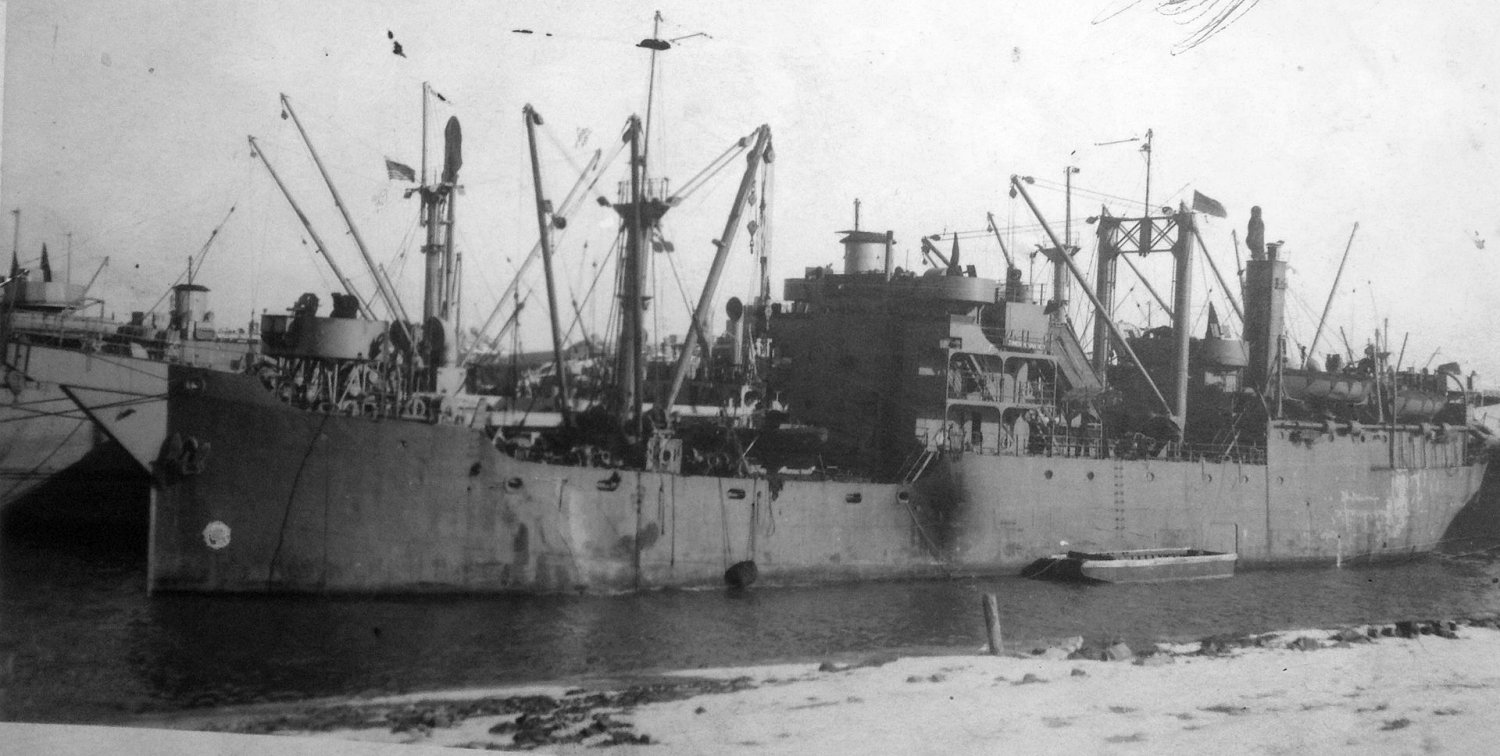 USAPRS Junior N. Van Noy circa 1944. moored in the harbor at Cherbourg, France. Junior N. Van Noy the