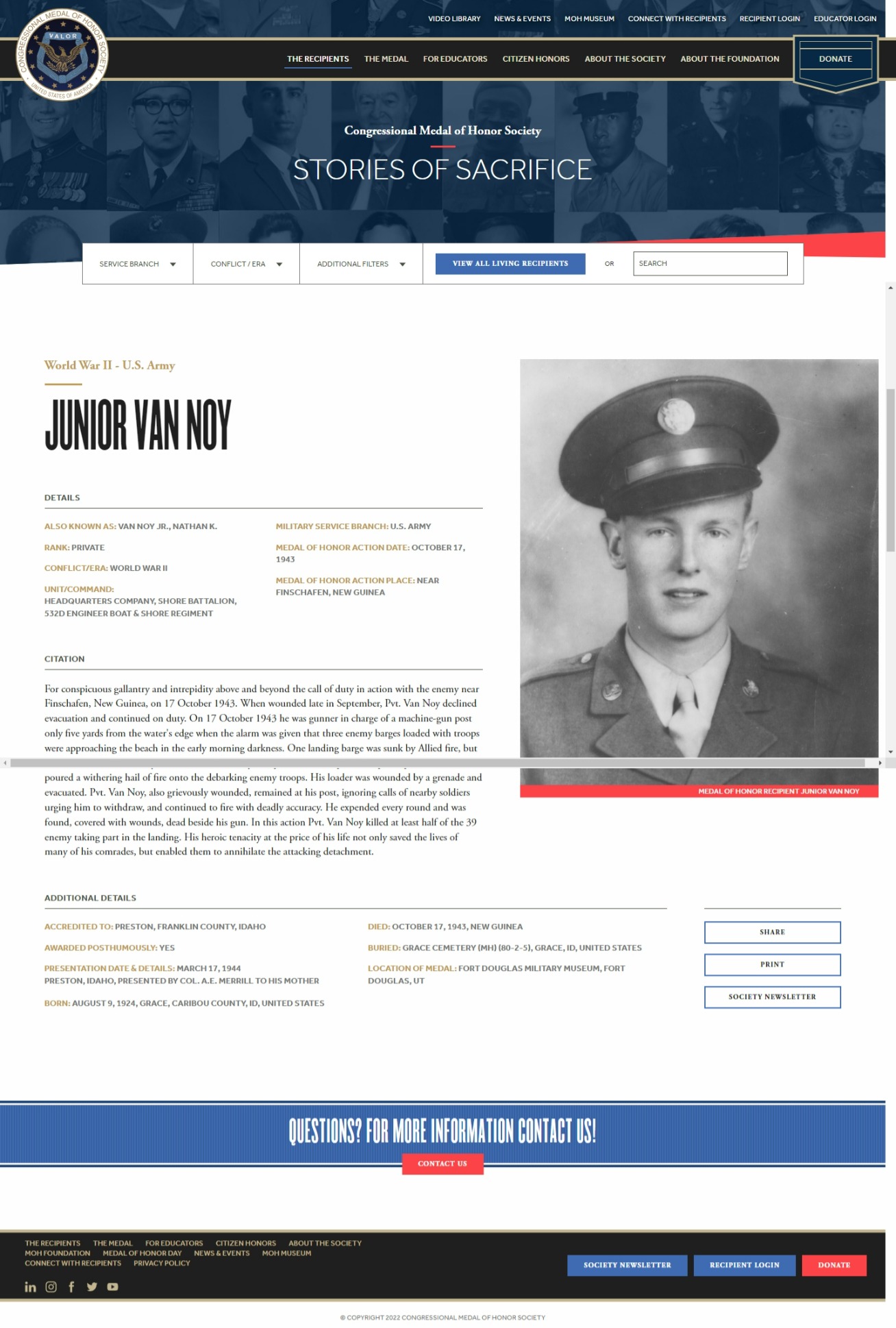 of Honor—for his actions in World War II. His birth name was Nathan Kilby Van Noy Jr.