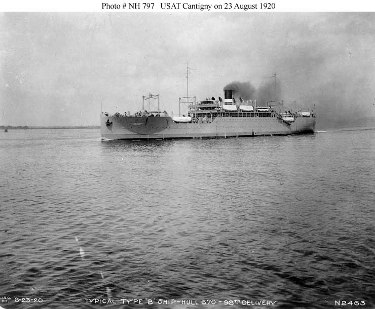 USAT Cantigny under way, 23 August 1920, on her delivery voyage from her builders Yard at Hog Island, PA.