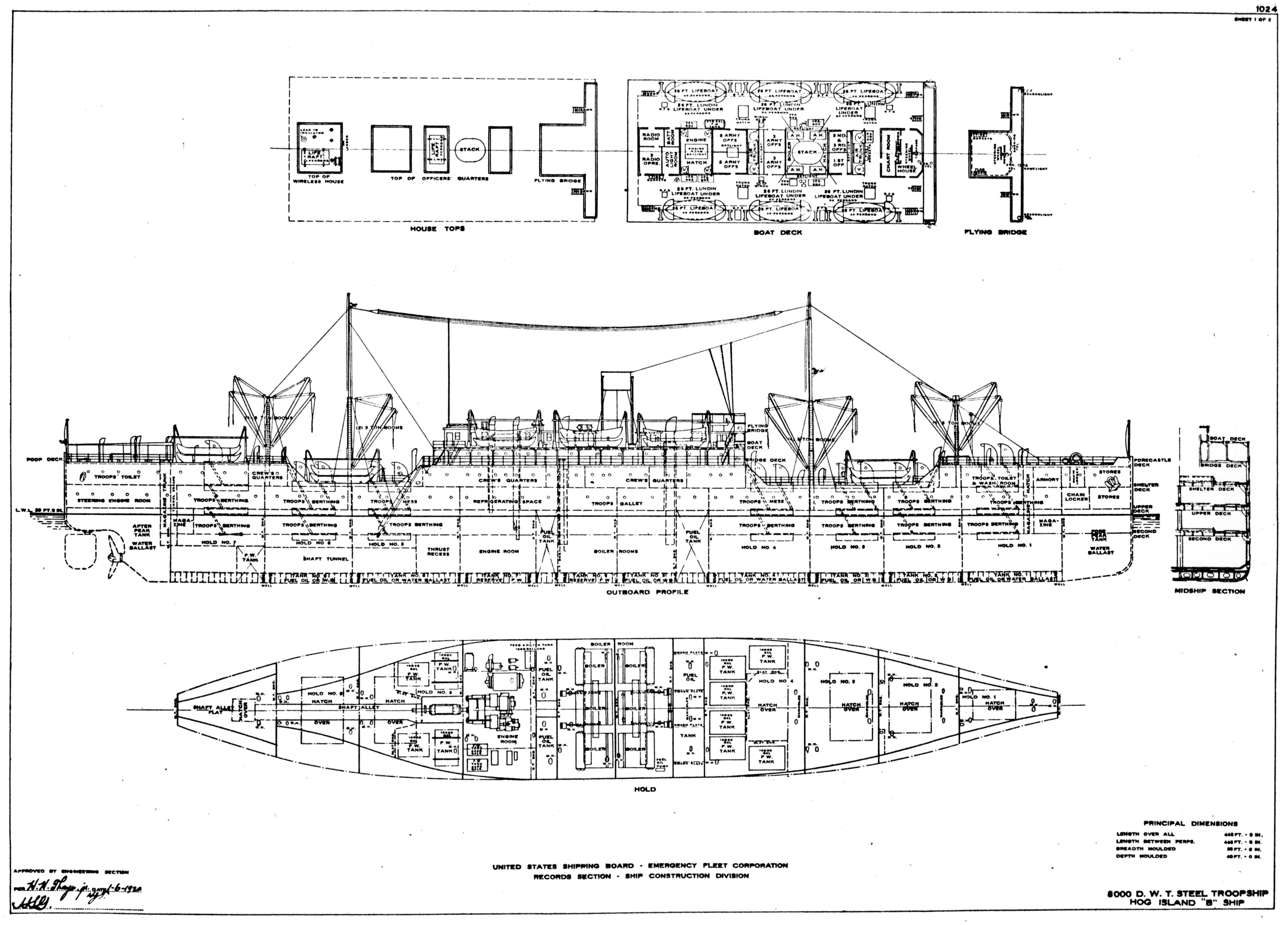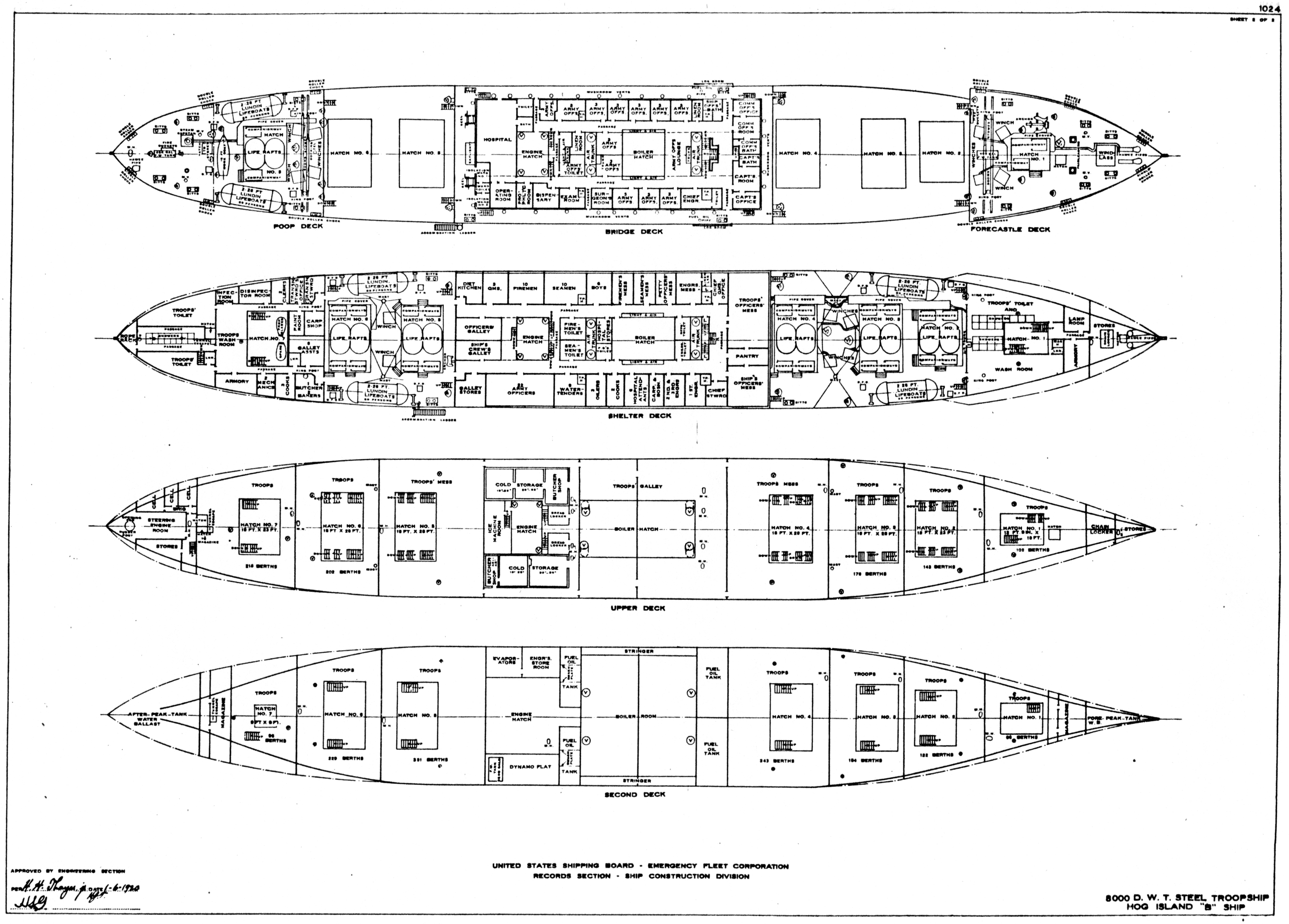 Plan Sheets 1 and 2 EFC Design 1024 (Standard Fabricated Hog Island Type B) for USAT Cantigny