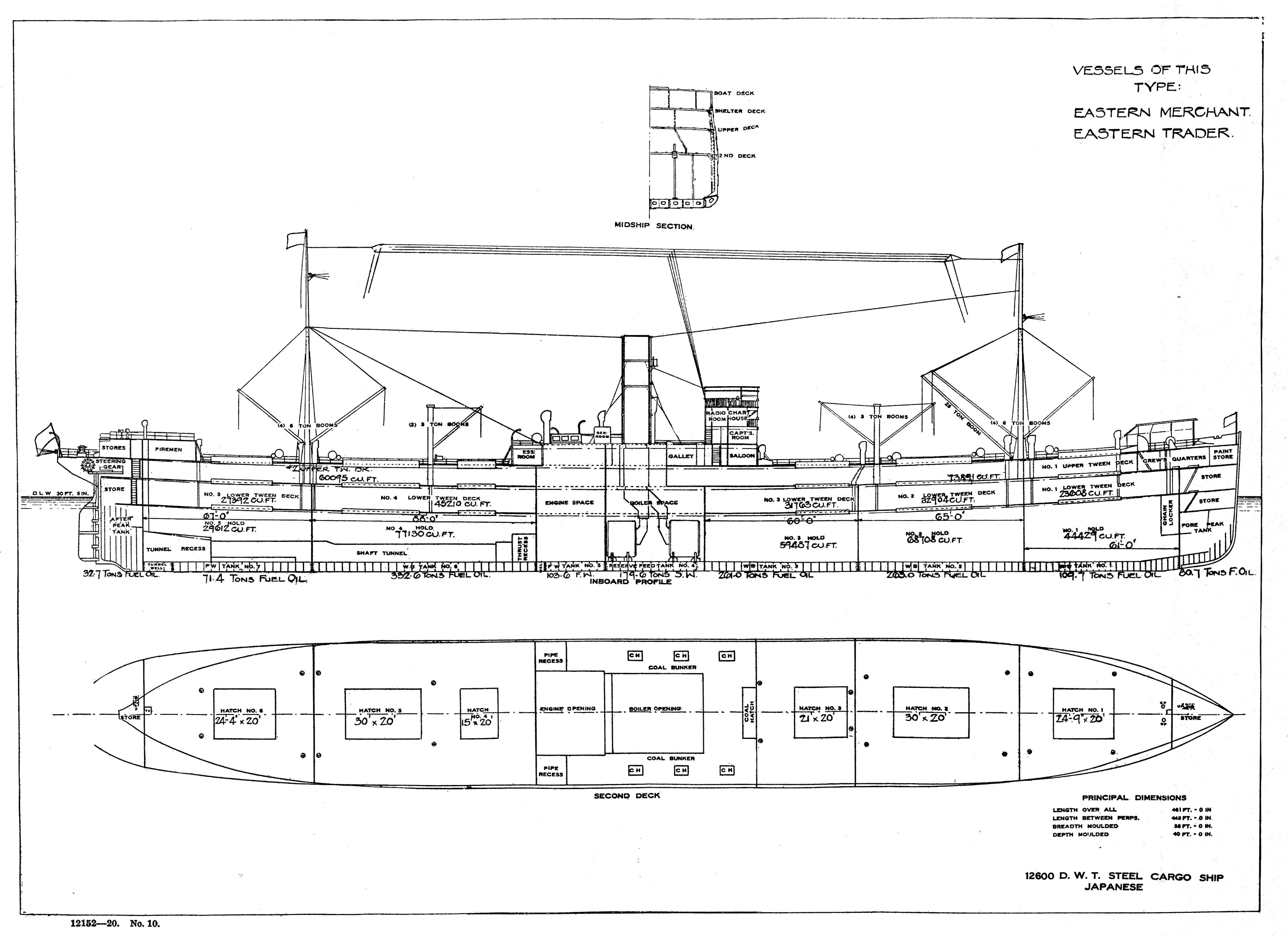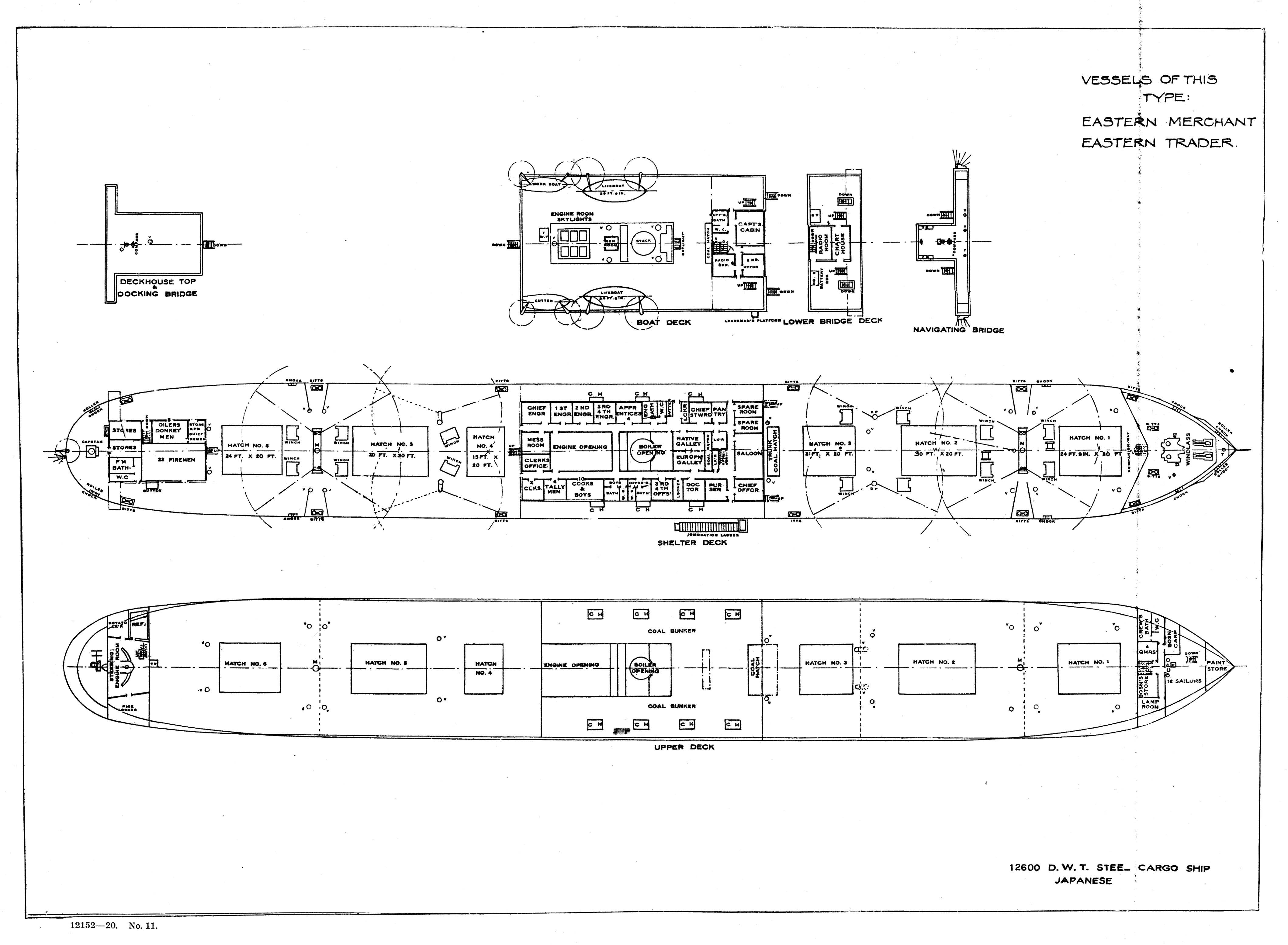 Horace Luckenbach 125k Deck Plans for SS Eastern Trader a United States Shipping Board Type-1124 cargo ship.