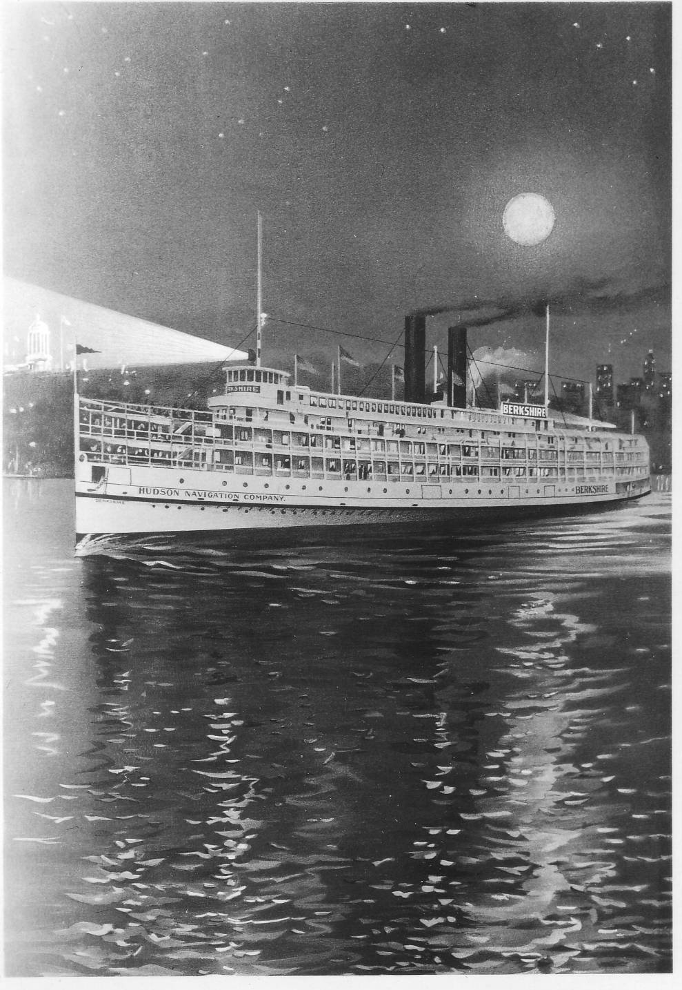 Same as U.S. Naval History and Heritage Command photo # NH 99705. Black and white copy of an advertising poster for the nightboat "Berkshire," Donald C. Ringwald Collection, Hudson River Maritime Museum. |