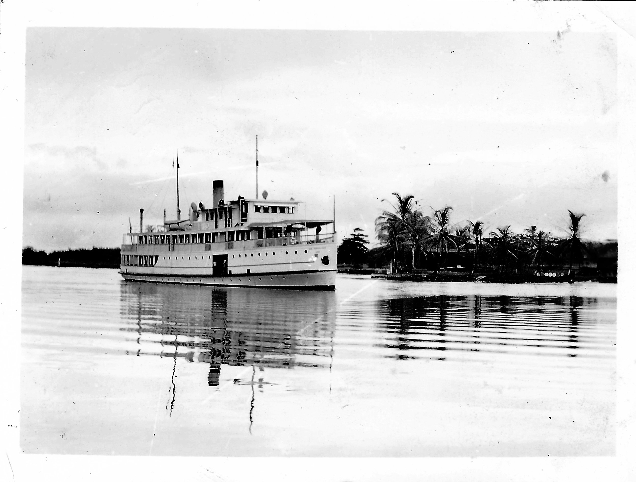USAT General Morgan Lewis off Fort Sherman, Canal Zone, in 1930. Note: there was no road to Fort Sherman at this time, so the ferry was the