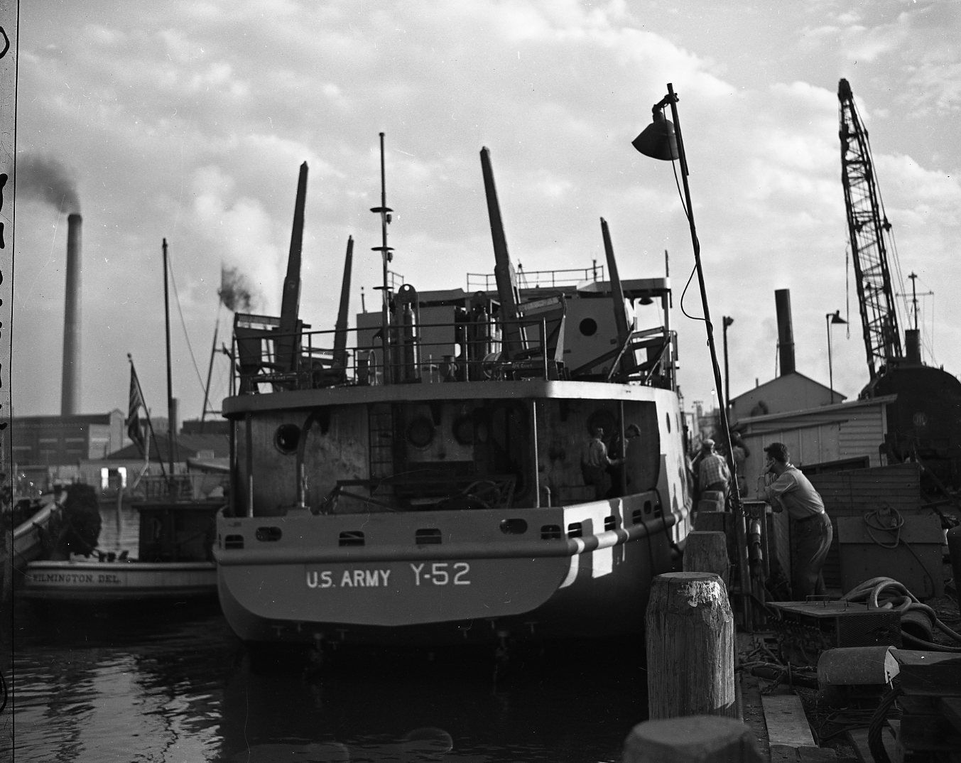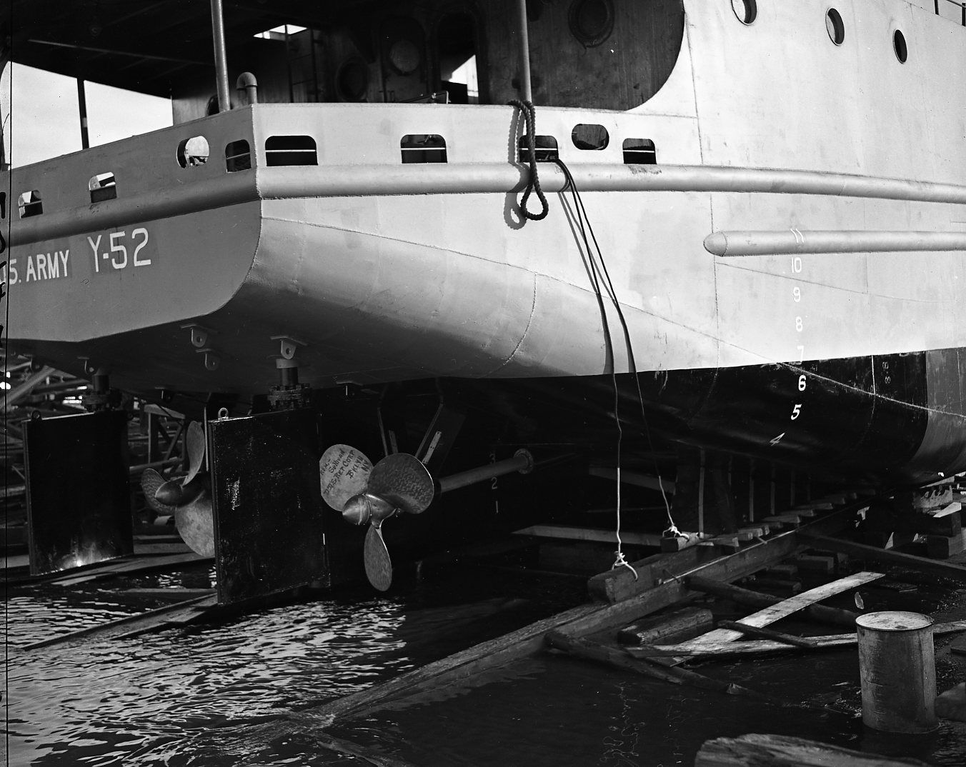 179k | Stern view of Y 52 after launching, 22 September 1944. Mathis Collection, Independence Seaport Museum, Philadelphia, PA |