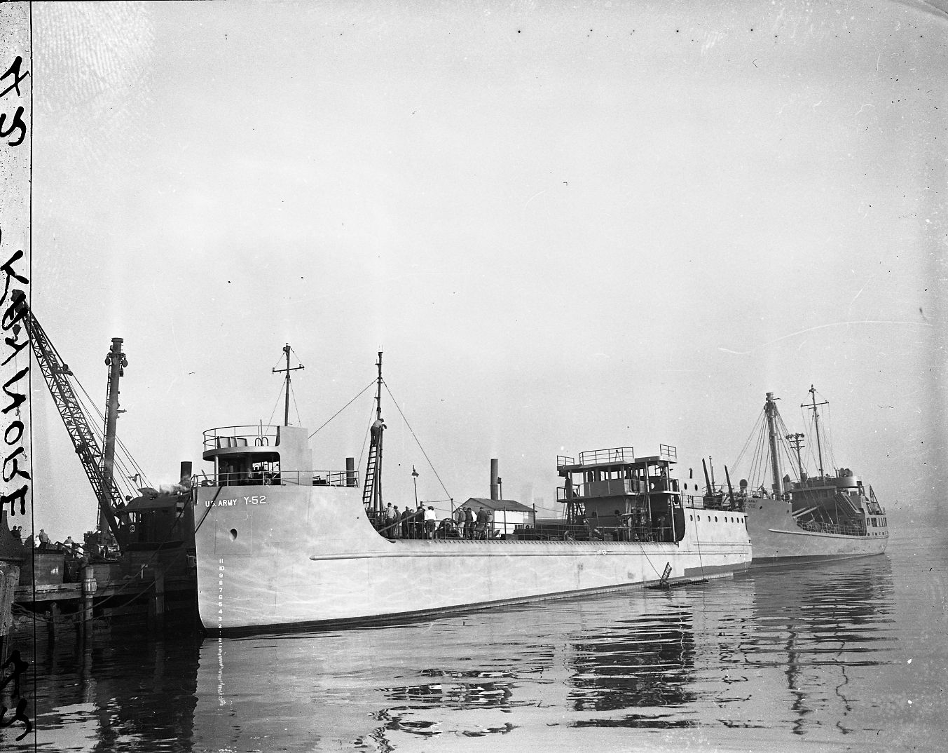 231k | Y 52 fitting out at John H. Mathis Co., 25 October 1944. FS 318 is fitting out aft of the tanker. Mathis Collection, Independence Seaport Museum, Philadelphia, PA |