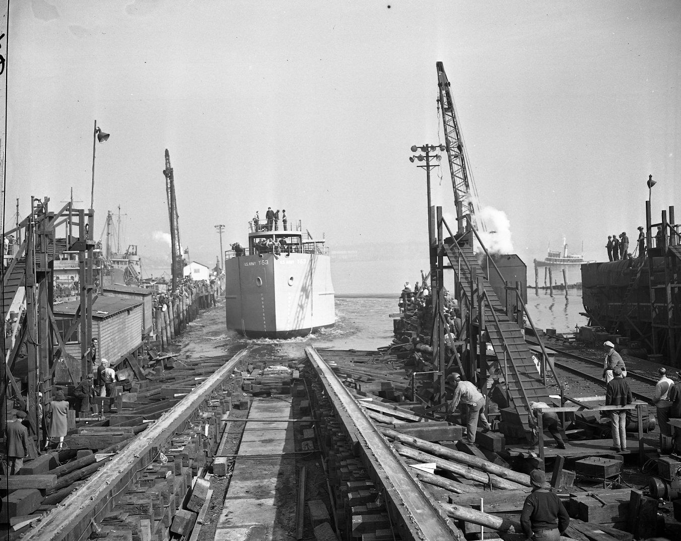 Y 53 enters the water for the first time, 12 October 1944. Mathis Collection, Independence Seaport Museum, Philadelphia, PA |