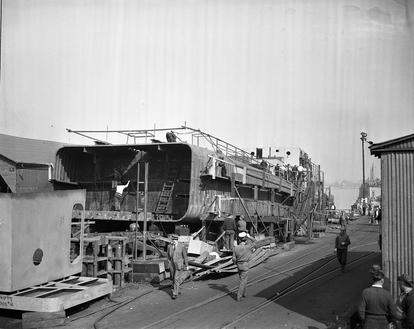 Progress photo during construction of Y 54 at John H. Mathis Co., 12 October 1944. Mathis Collection, Independence Seaport Museum, Philadelphia, PA |