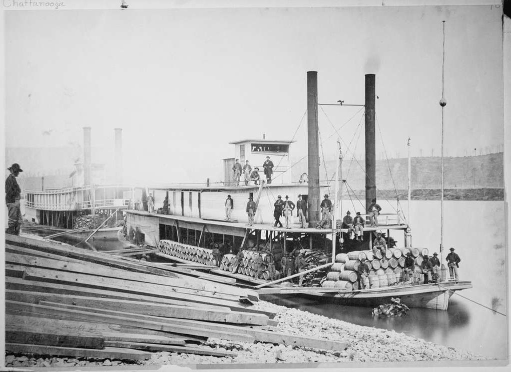 127k | US Army Transport Chattanooga tied up to a riverbank, circa 1861-1865, location unknown. | John Spivey | |