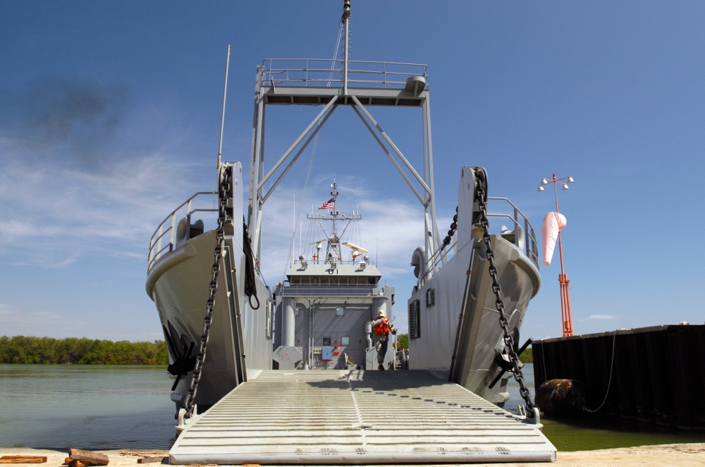 188k | USAV Runnymede (LCU-2001) beaches on the ramp on the Leeward shoreline of Naval Station Guantanamo Bay, Cuba, 21 February 2013.
