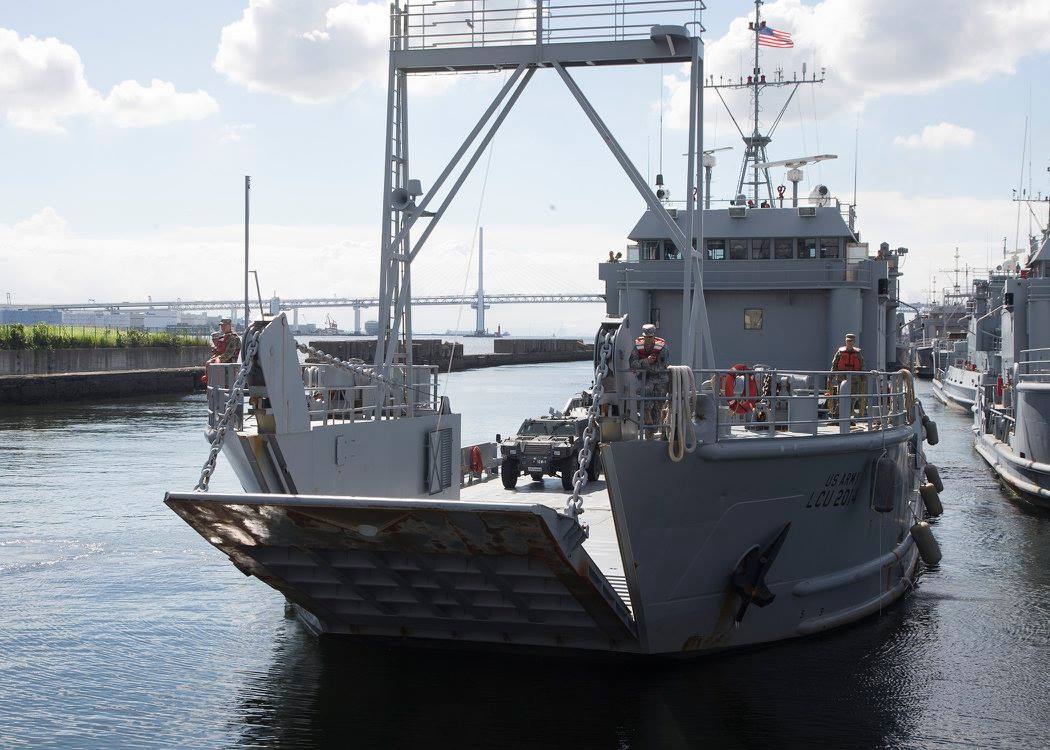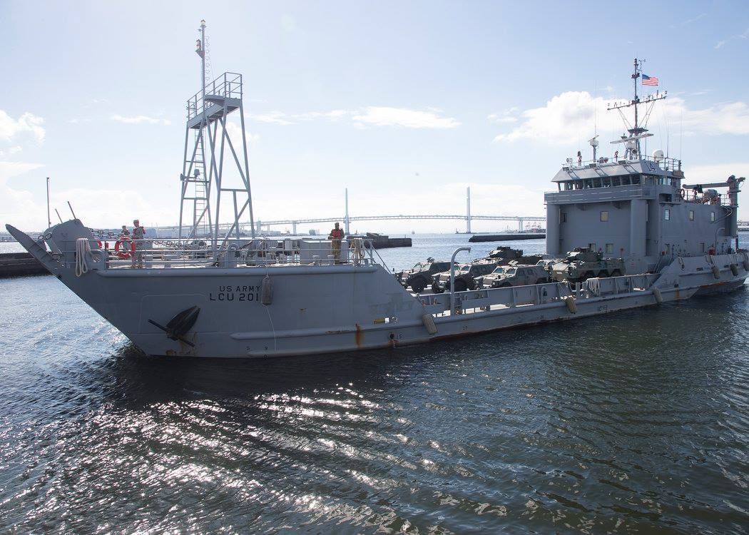 137k | USAV Coamo (LCU-2014) is ready to unload Japan Ground Self-Defense Force's Western Army vehicles at the Yokohama North Dock unloading