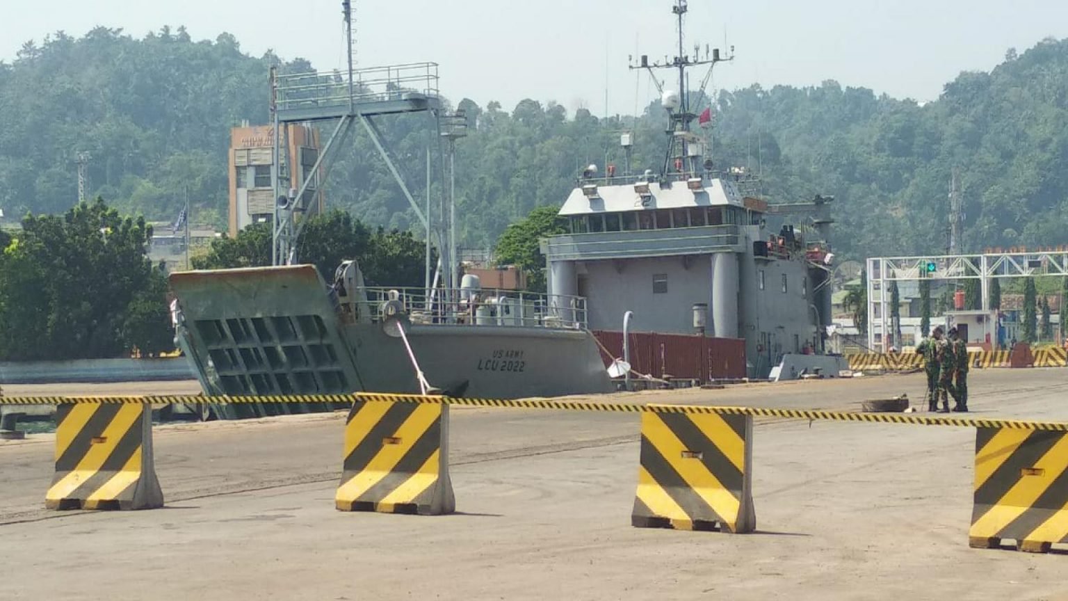 USAV Harpers Ferry (LCU-2022) moored pierside at Lampung Naval Base, Indonesia, 18 July 2021. Harpers Ferry is in Indonesia to