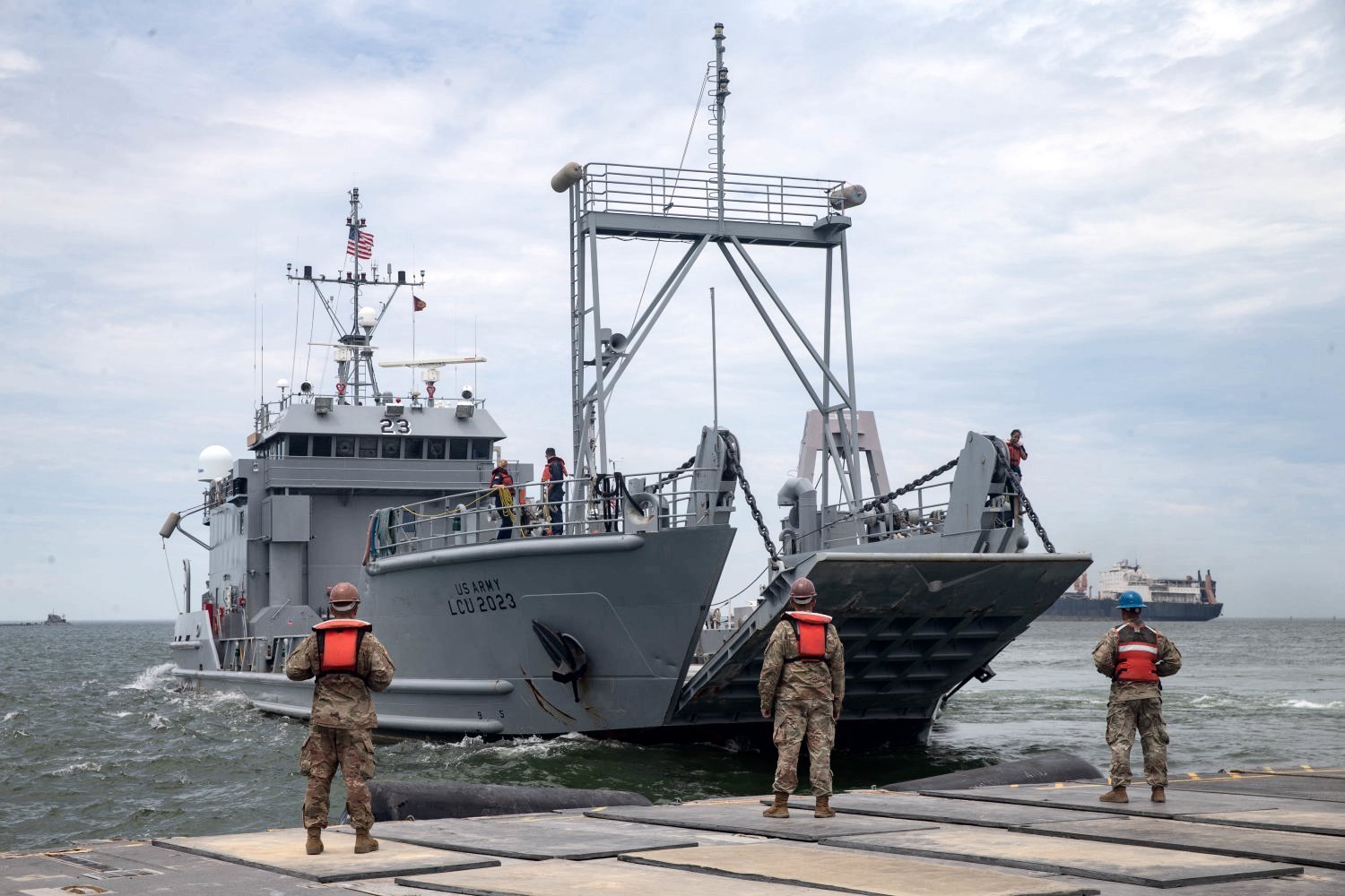 239k | U.S. Army Sgt. Nathan Love, boatswain, USAV Hobkirk (LCU 2023), 7th Sustainment Brigade (Expeditionary), guides a Joint Task Force