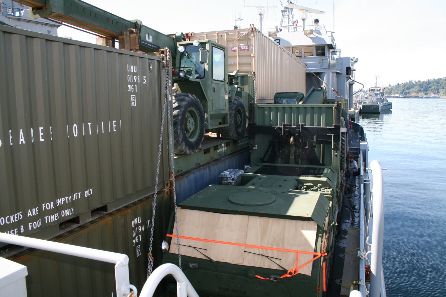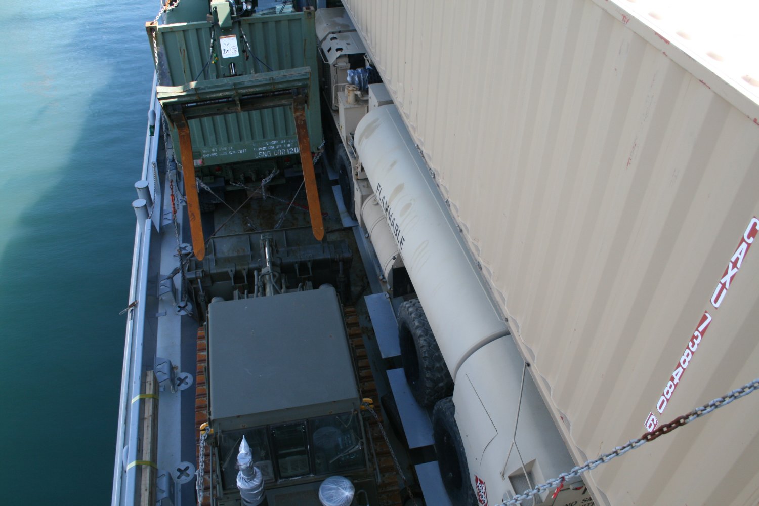 214k | USAV Malvern Hill (LCU-2025) cargo deck loaded for the