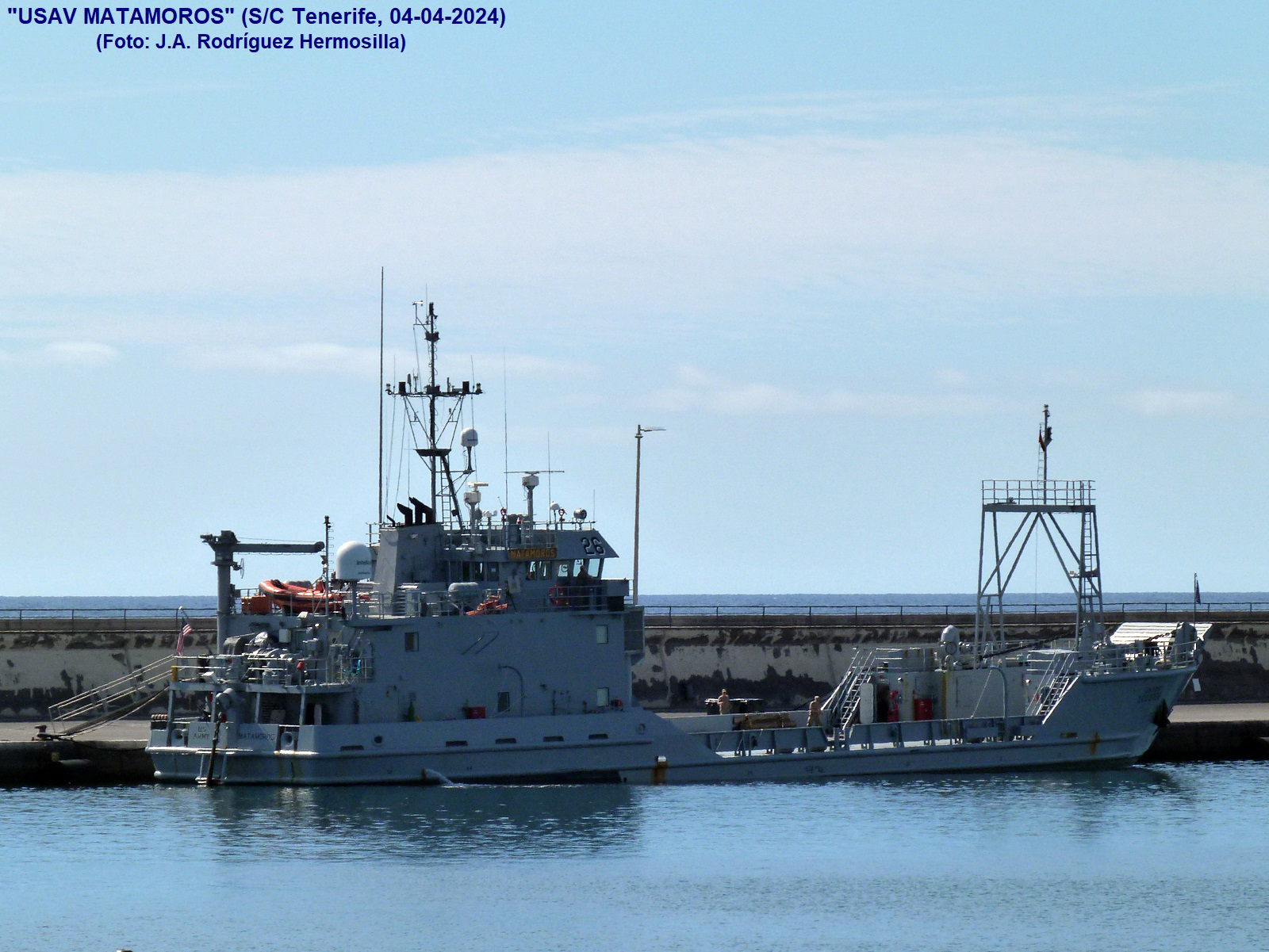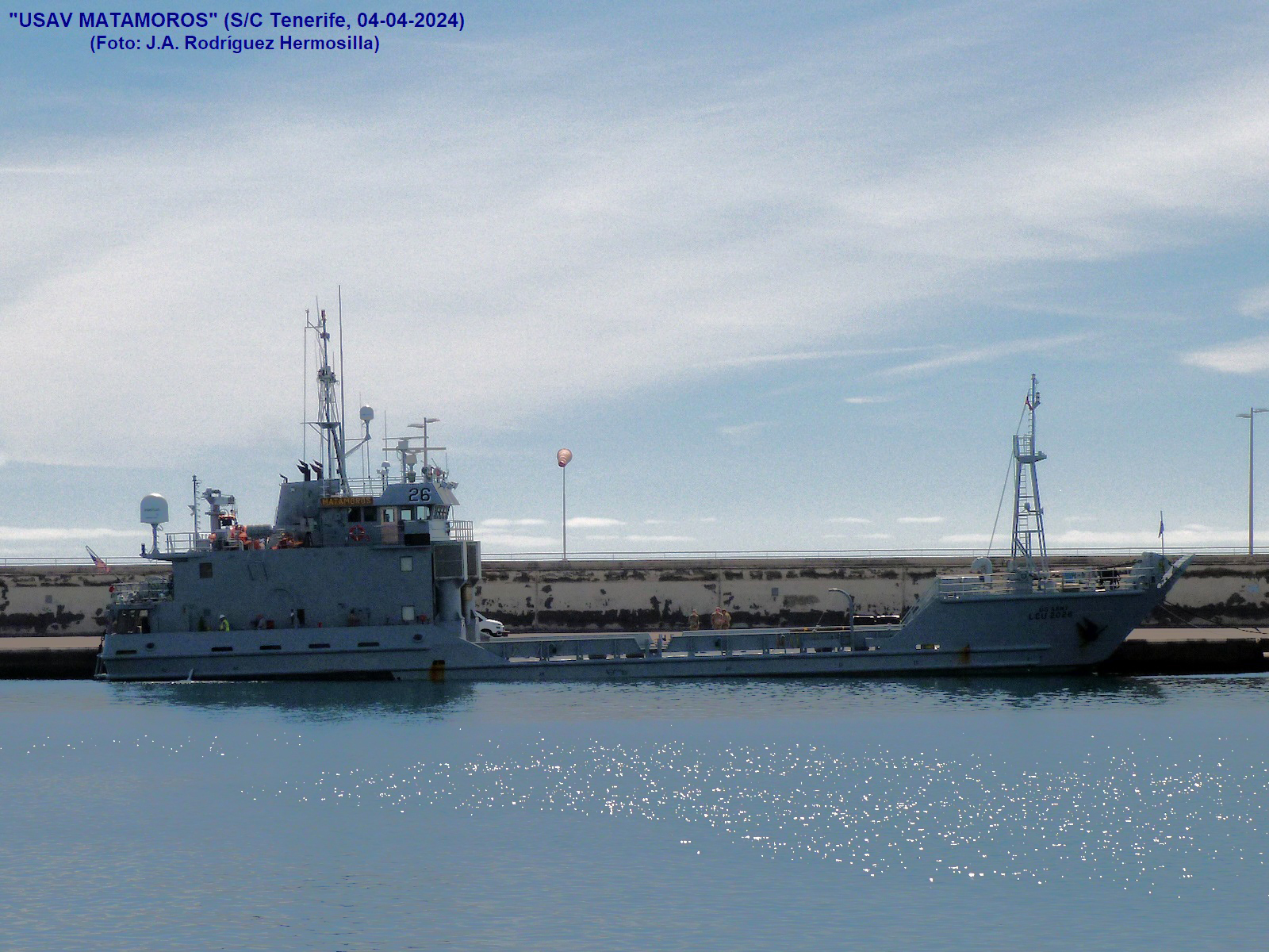 1042k | USAV Matamoros (LSU-2026), tied up at the breakwater, Tenerife, Canary Islands, 5 April 2024, while enroute to the Gaza Strip to provide humanitarian support. Photo by J.A. Rodriguez Hermosilla |
