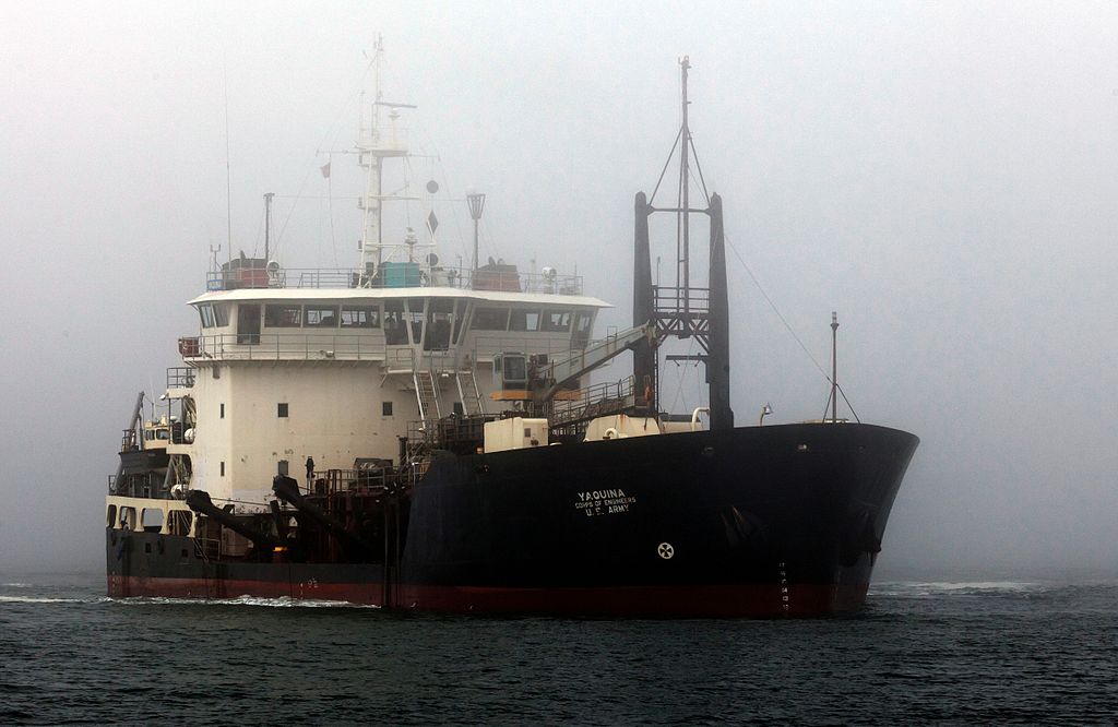 USACE Dredge Yaquina dredges Morro Bay harbor channel near north breakwater in Morro Bay, CA., 2 June 2010.