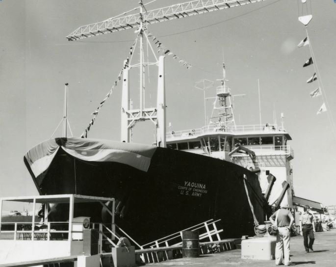 USACE Dredge Yaquina launching and christening in 1981 at Norfolk Shipbuilding and Drydock Corp., Norfolk, VA. |