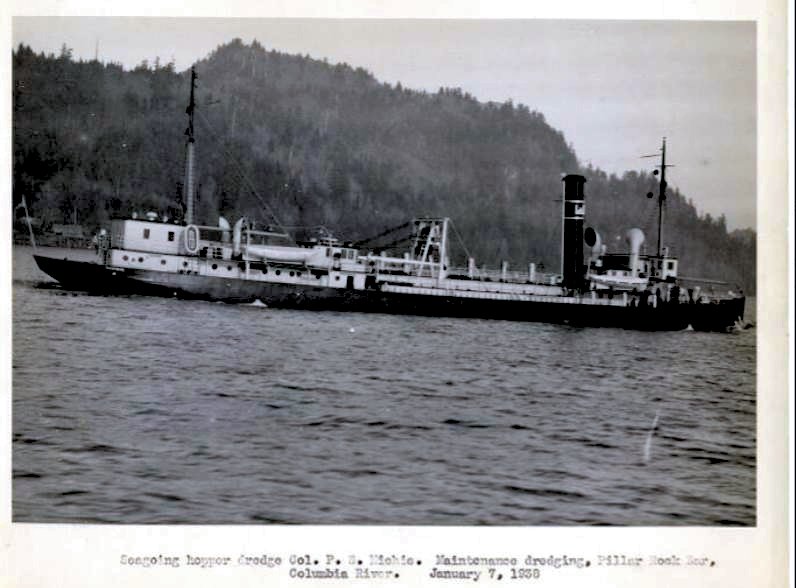 USED Dredge Col. P.S. Michie maintenance dredging Pillar Rock Bar on the Columbia River, 7 January 1938.