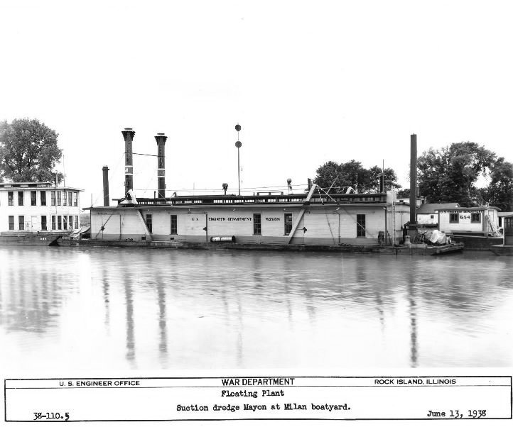65k US Army Corps of Engineers dredge USED Mayon moored at Milan Boat Yard, 13 June 1938.