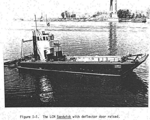 91k | US Army Corps of Engineers LCM(8) Sandwick underway with deflector door raised, prior to 1972 conversion, location unknown