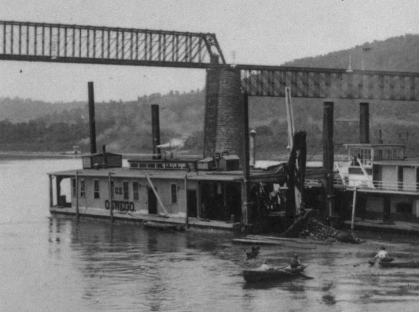 136k | U.S. Engineering Department Ohio River dredges USED Oswego (right), USED Ohio (center) and an unidentifed