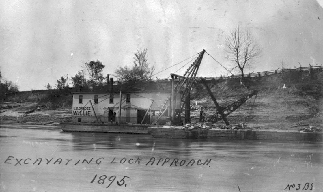 109k USED Dredge Willie excavating a lock approach, in 1895, location unknown.