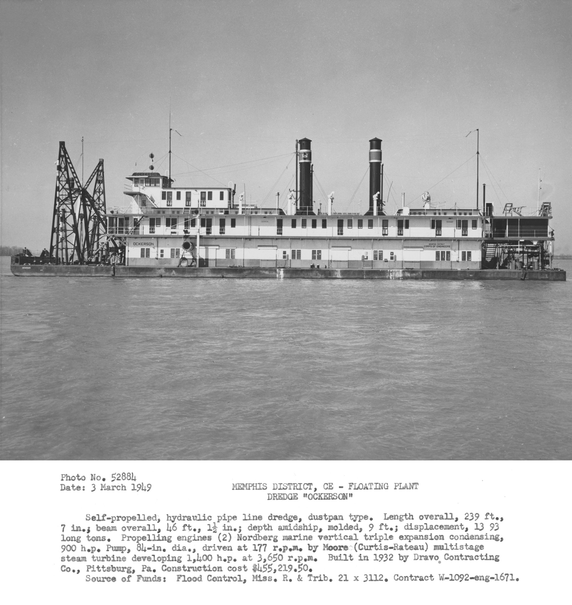 • Laid down in 1932 as the dredge Ockerson, at Dravo Corp., Pittsburgh, PA.