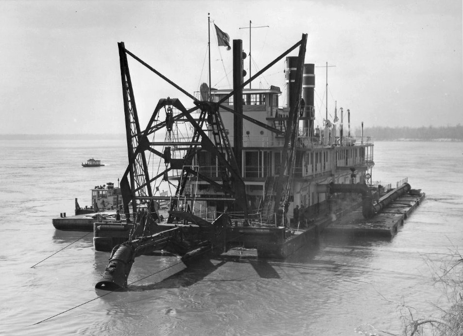 117k USED Dredge Ockerson, 8 January 1942, dredging on the Mississippi River at Hardin Point Cut-off, River Miles 280.3 - 293.8.