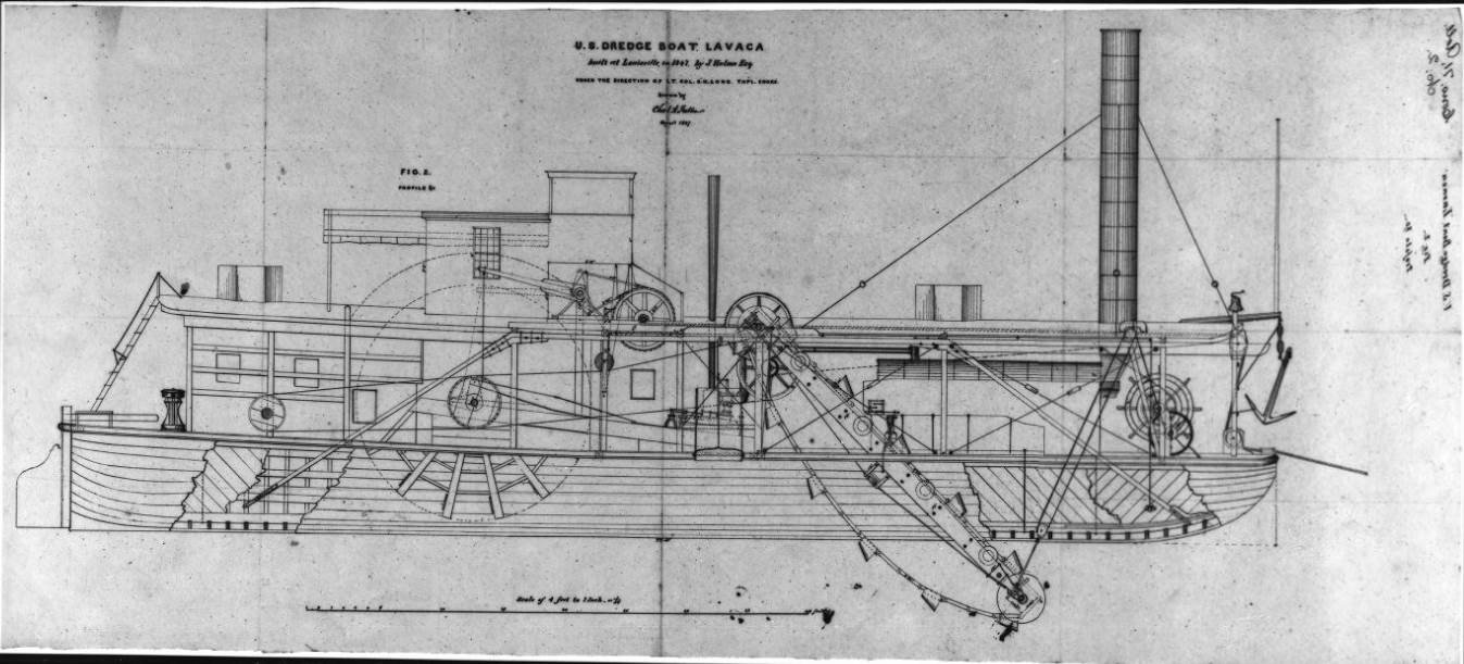 164k Drawing, probably by Charles A. Fuller in August 1847, of USED Dredge Lavaca