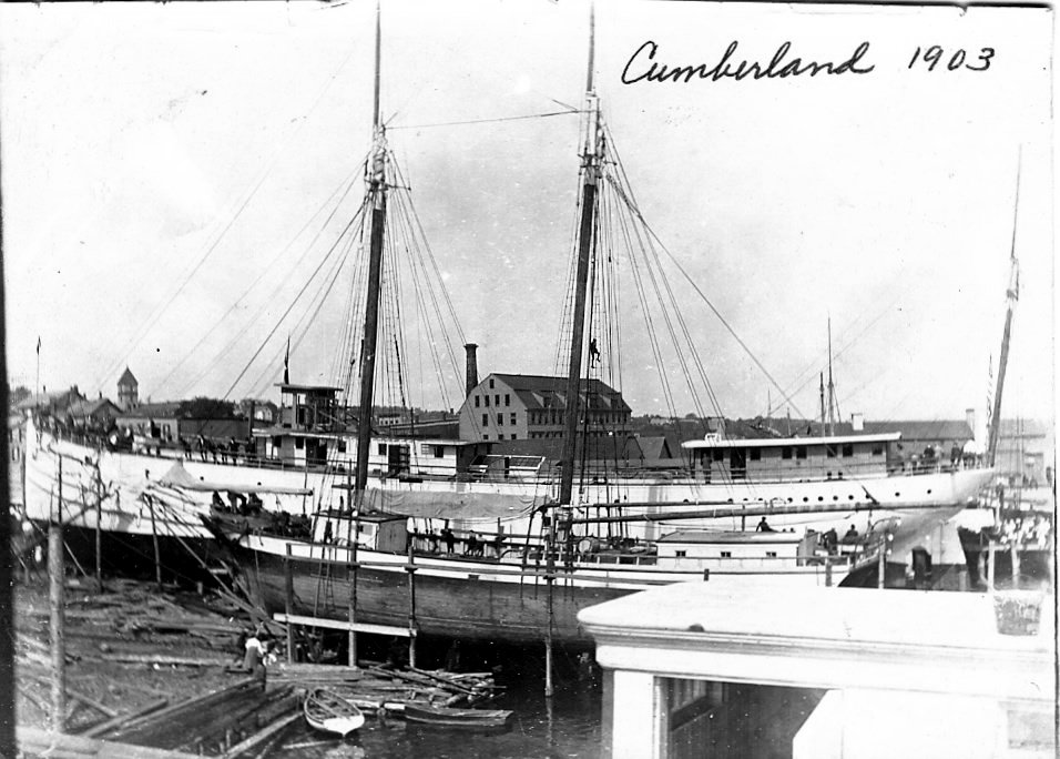 • Laid down in 1902 as the wood hull dredge Cumberland for the US Army Engineers by George A. Gilchrist, Belfast ME.