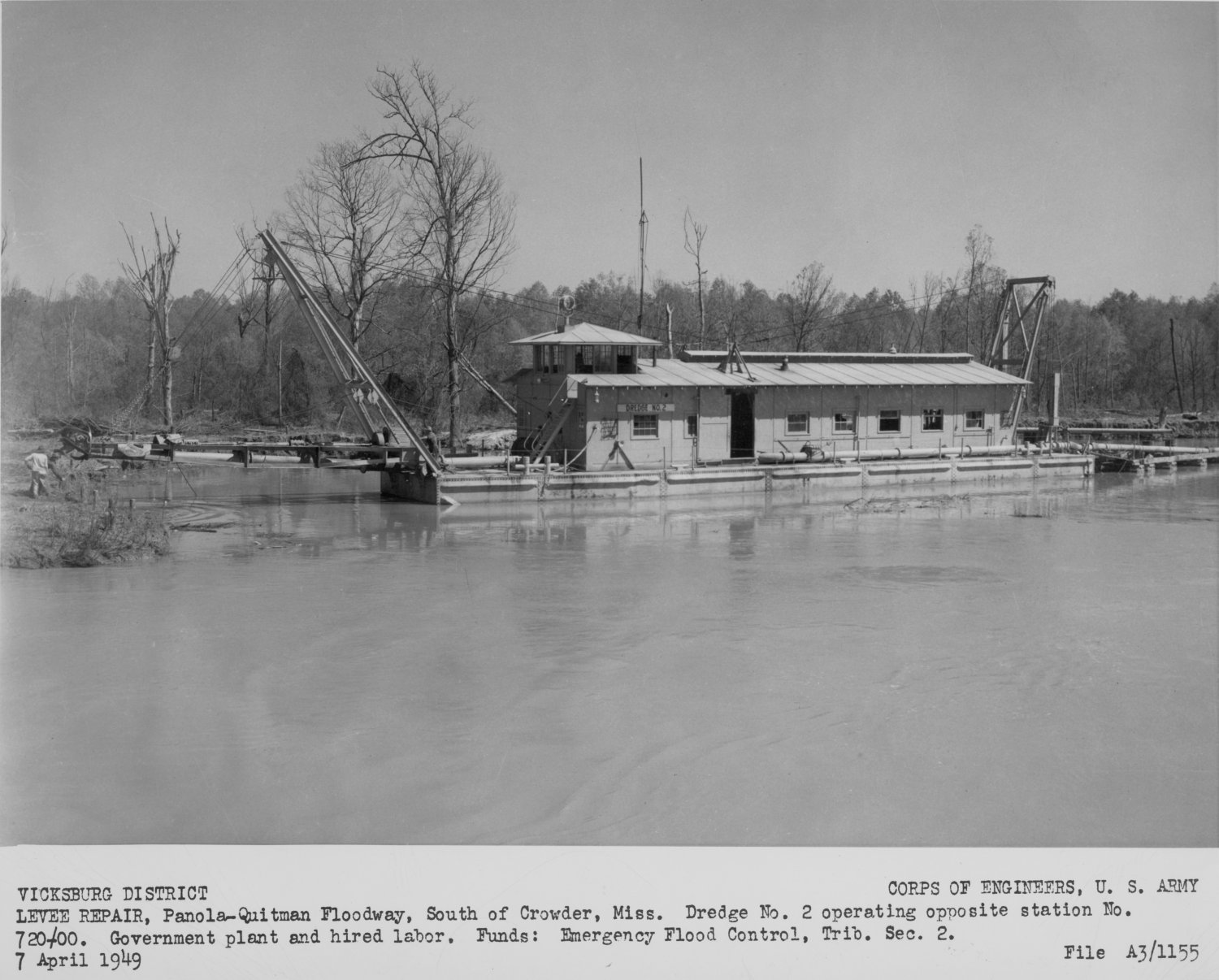245k Dredge No. 2 doing levee repair on the Panola-Quitman Floodway, south of Crowder, MS., 7 April 1949