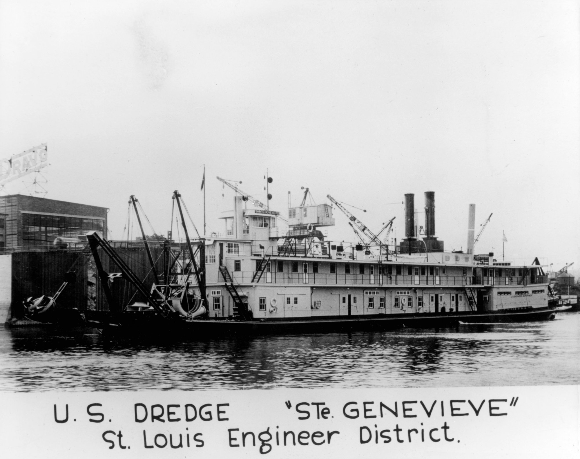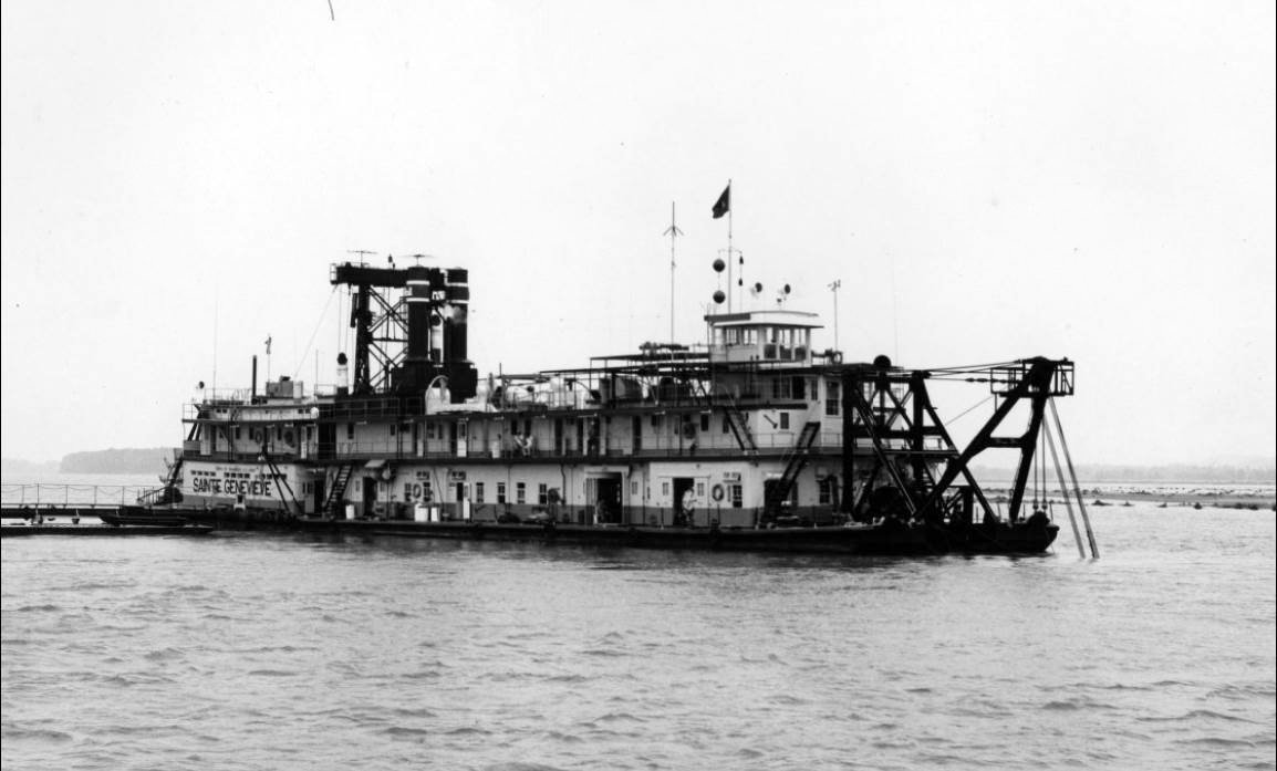 97k | USACE Dredge Sainte Genevieve dredging a channel, date and location unknown.