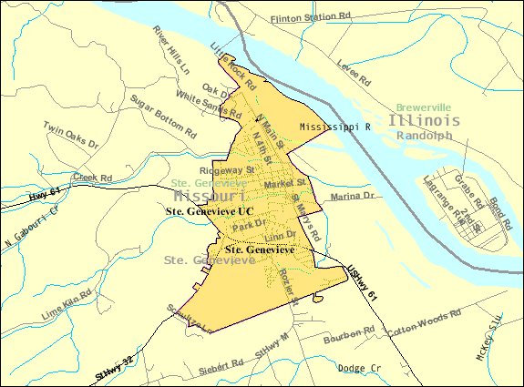 35k | U.S. Census 2000 reference map for Sainte. Genevieve in Missouri. |