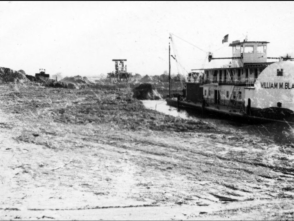 141k | The dredges William M. Black and Sainte Genevieve dredge opposite each other in October 1952