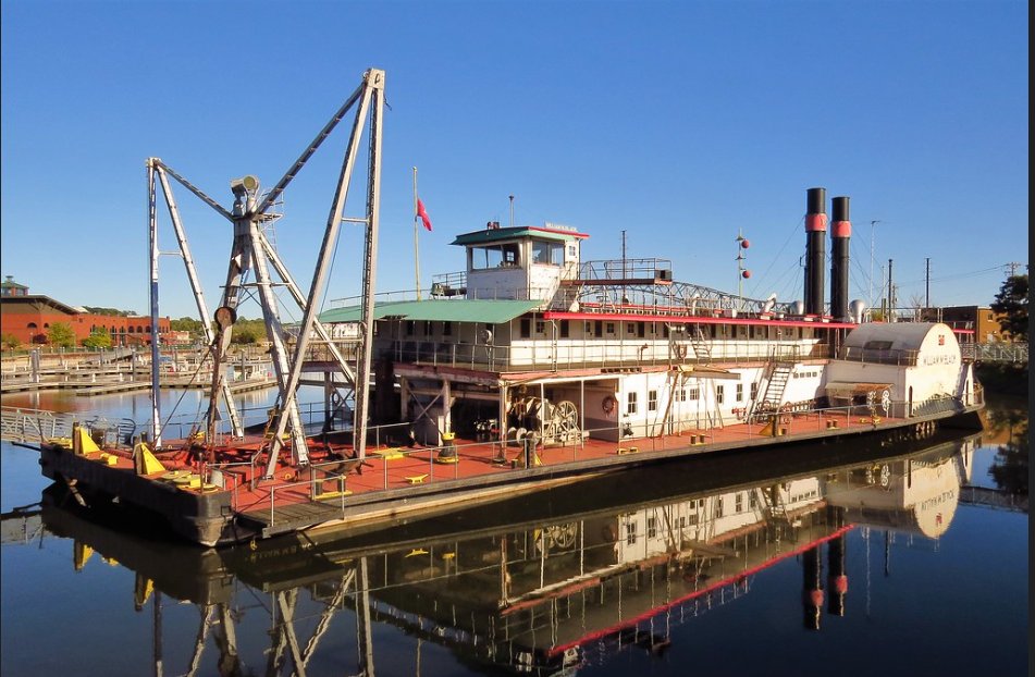 82k | U.S. National Historic Landmark ex-U.S. Army Corps of Engineers Self-propelled Dustpan Dredge William M. Black moored pierside at