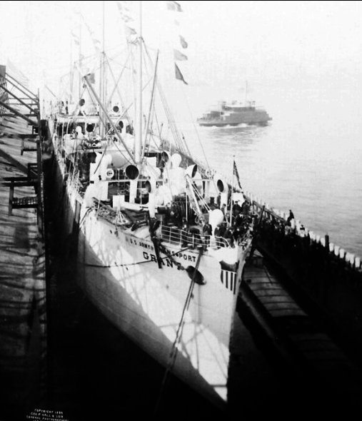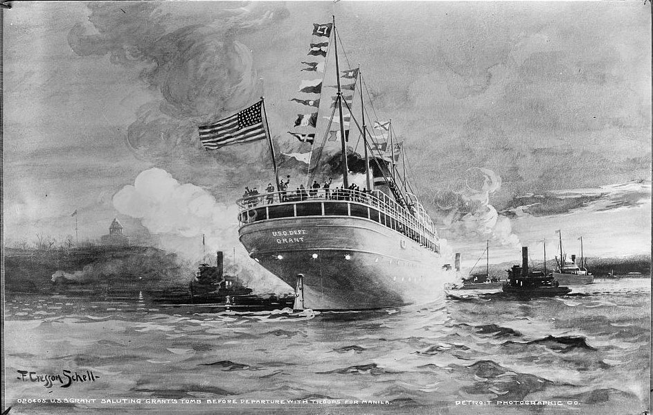 USQMD Transport Grant departing New York, saluting Grant’s Tomb before departure with troops for Manila.