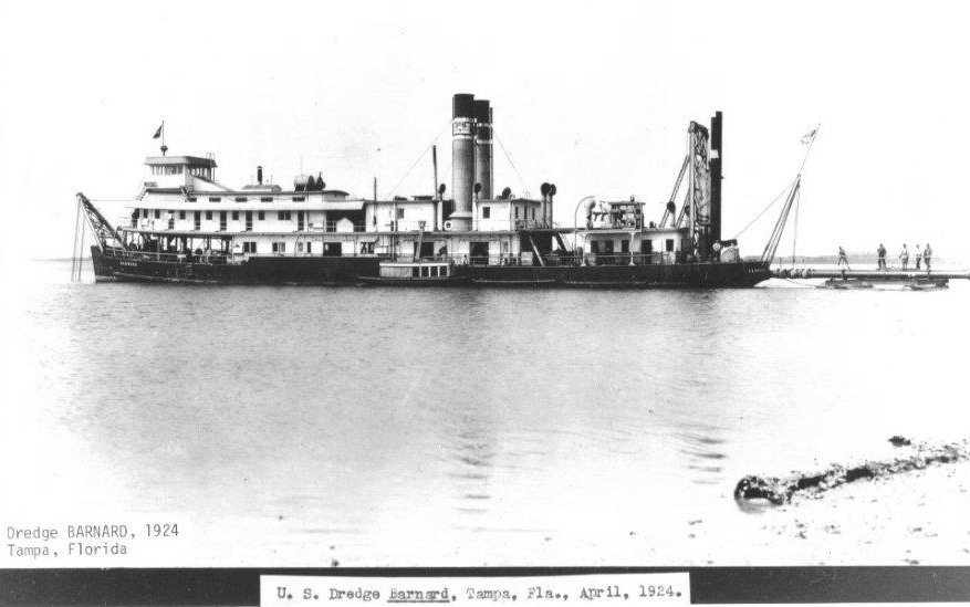 66k USED Dredge Barnard dredging a channel in Tampa Bay, FL., 11 April 1924. US Army Corps of Engineers