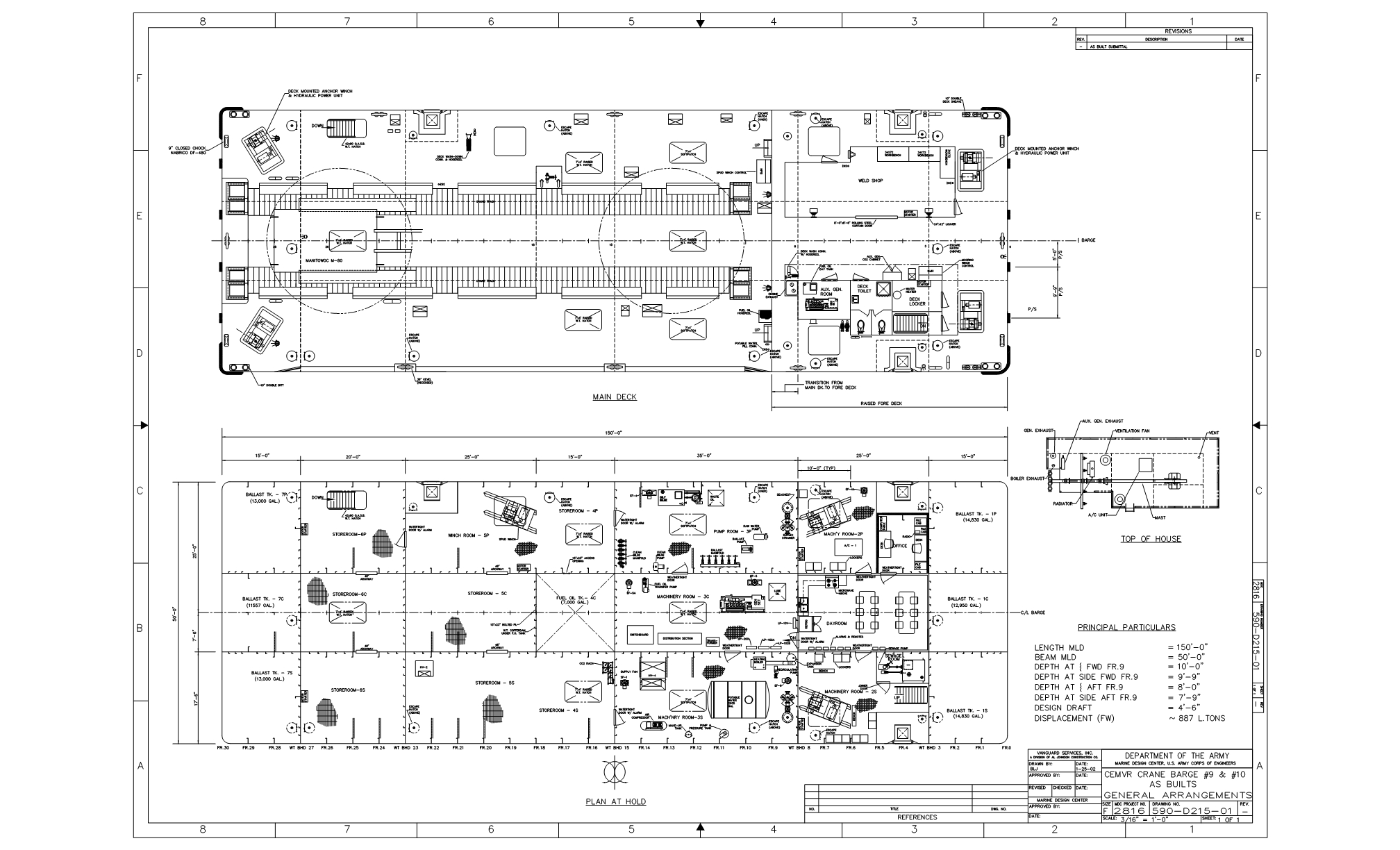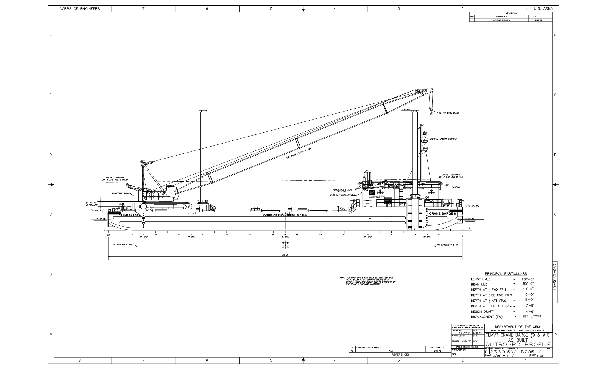 USACE Crane Barge DB-9 and DB-10 Plans, Outboard Profile and General Arrangement..