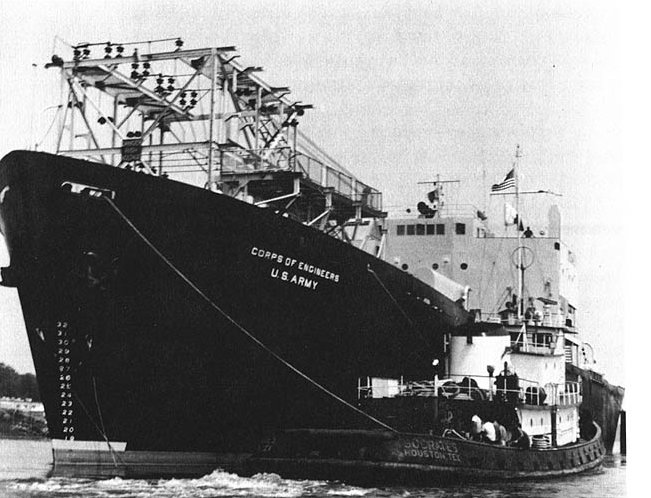 The Reactor Pressure Vessel from Sturgis (MH-1A), the Army’s retired floating nuclear power plant recently decommissioned, is carefully loaded onto a