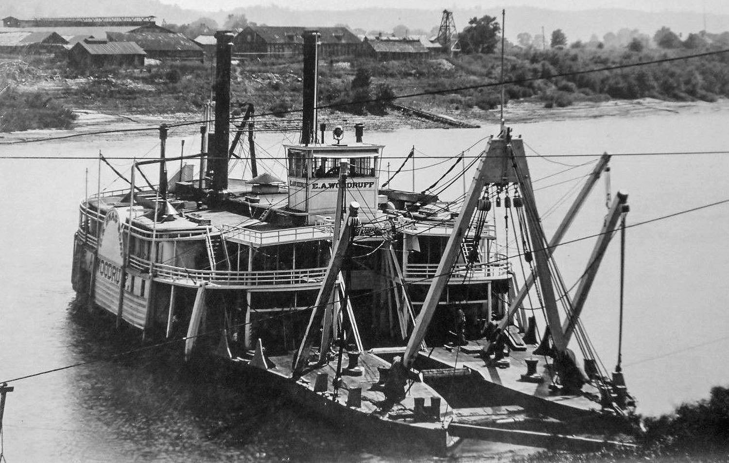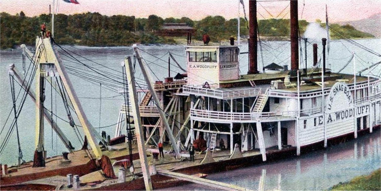 264k | USED Snagboat E.A. Woodruff pulling snags on the Ohio River, date and location unknown.