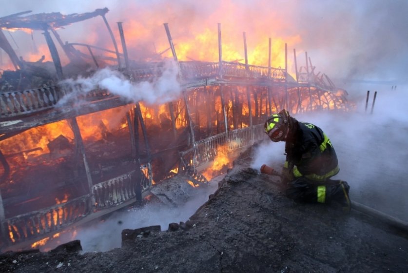 LT. Robert E. Lee Seafood Restaurant, burning, 21 March 2010.