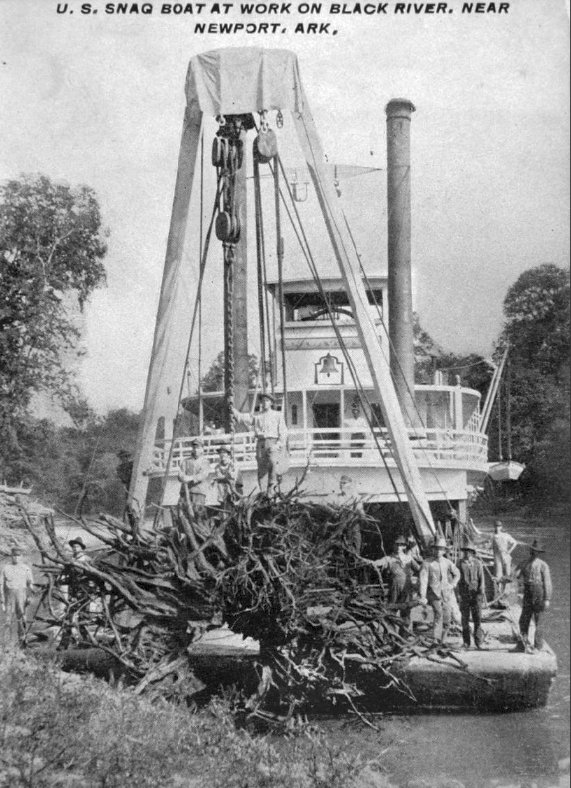 124k USED Snagboat Quapaw at work on the Black River near Newport, Arkansas, date unknown.