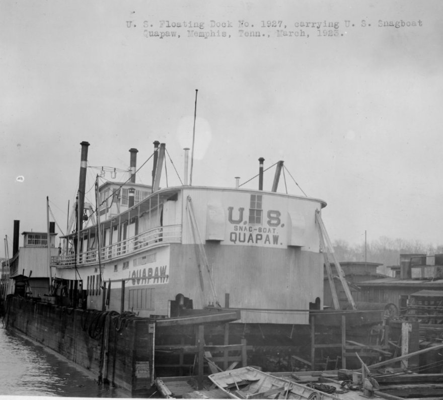 82k USED Floating Dock No. 1927 carrying USED Snagboat Quapaw, at Memphis, TN., March, 1923.