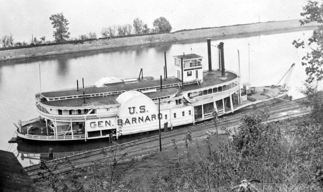 USED Snagboat General Barnard moored to a riverbank, date and location unknown.