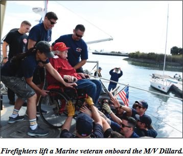 Yacht Club in Oakland, CA., 23 September 2018. With assistance from local firefighters, more than one hundreds veterans, many in wheelchairs, boarded the fleet of ships for a