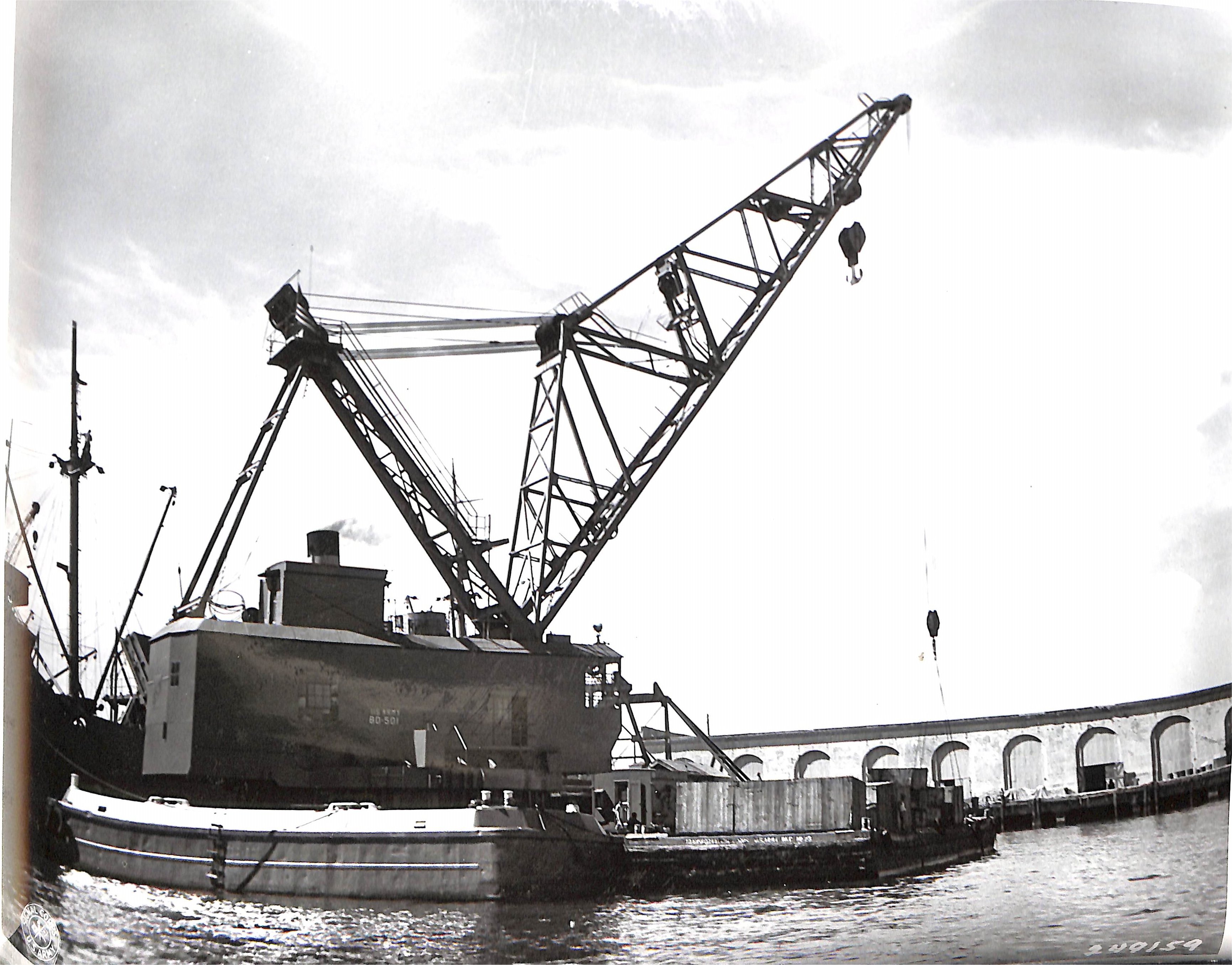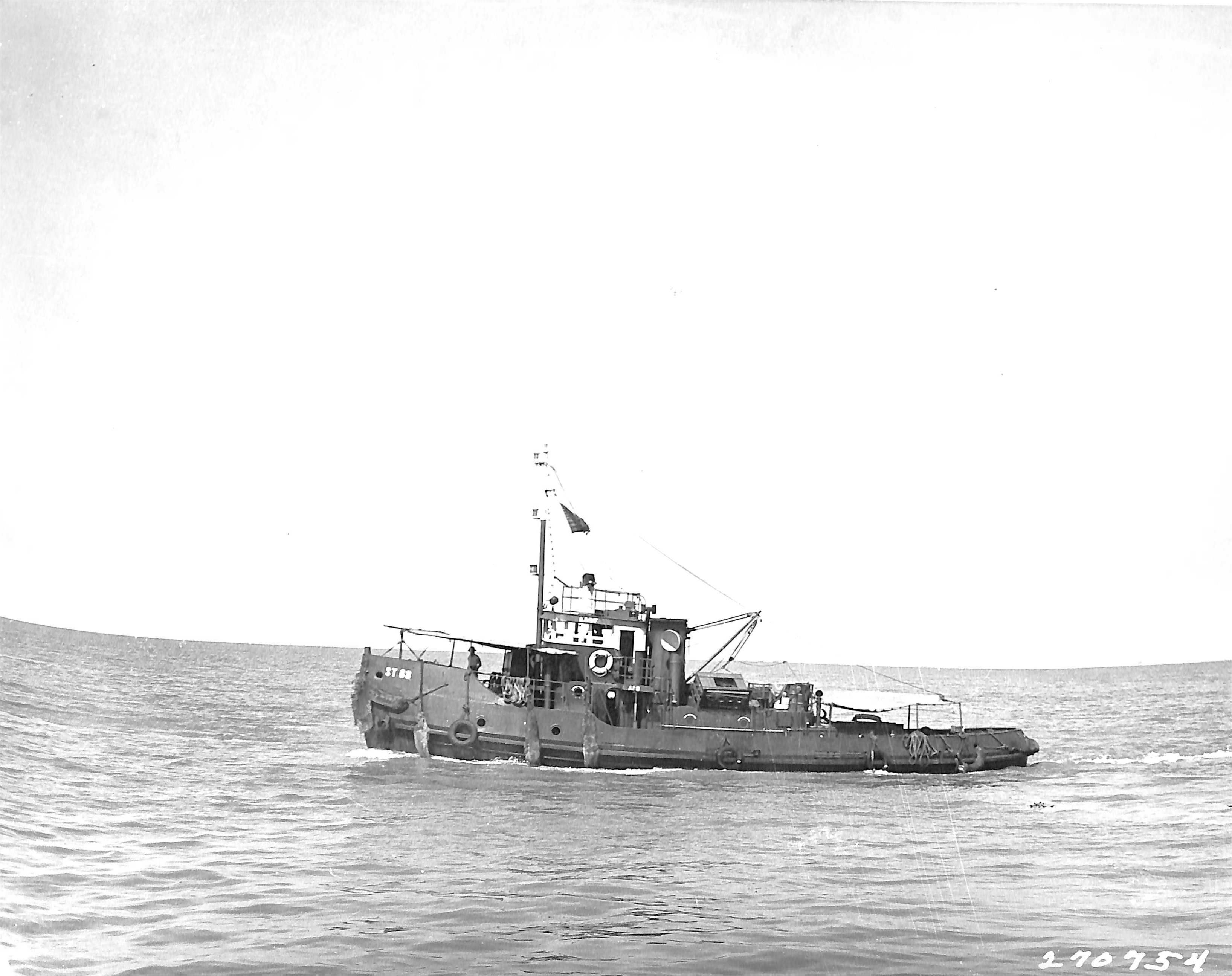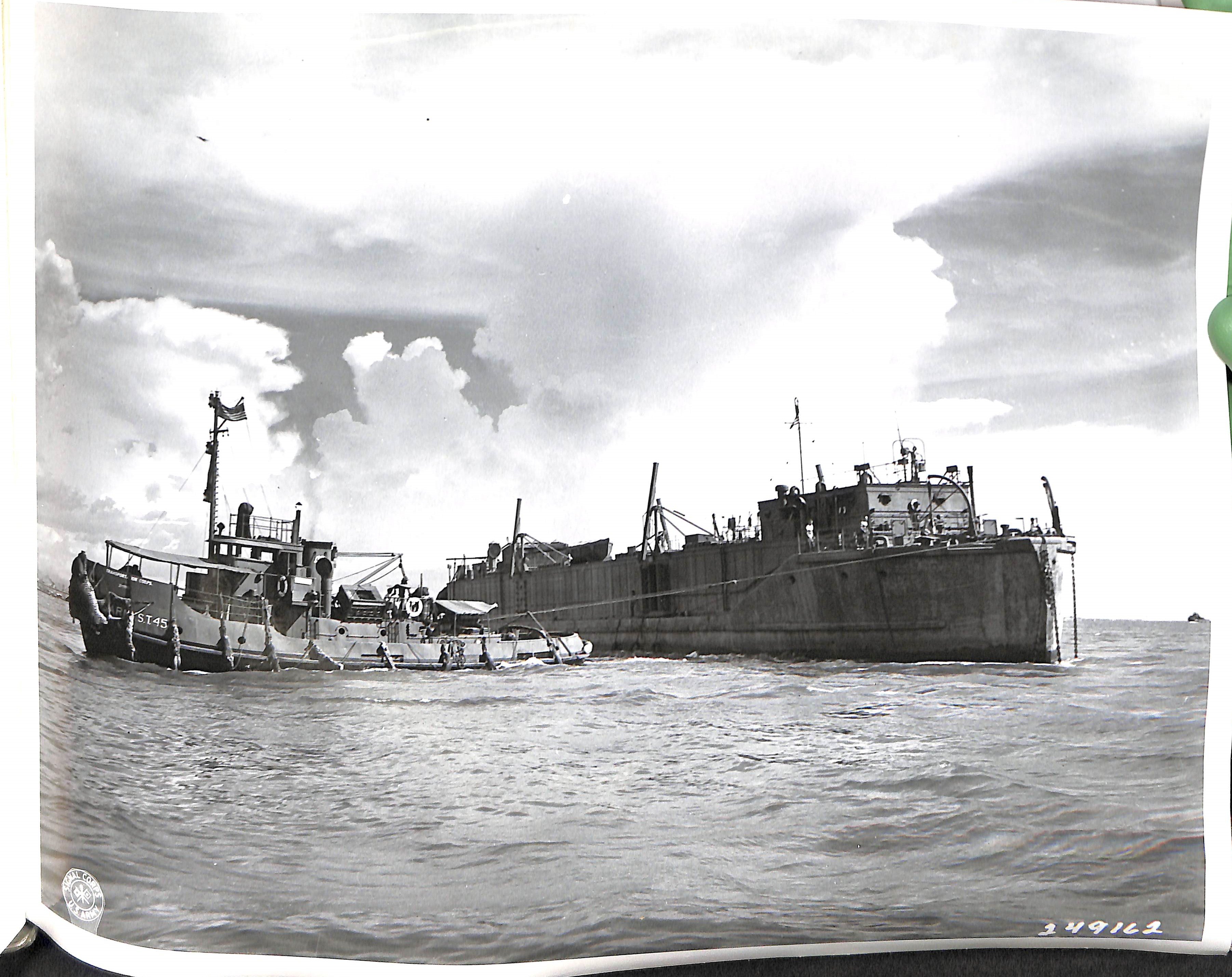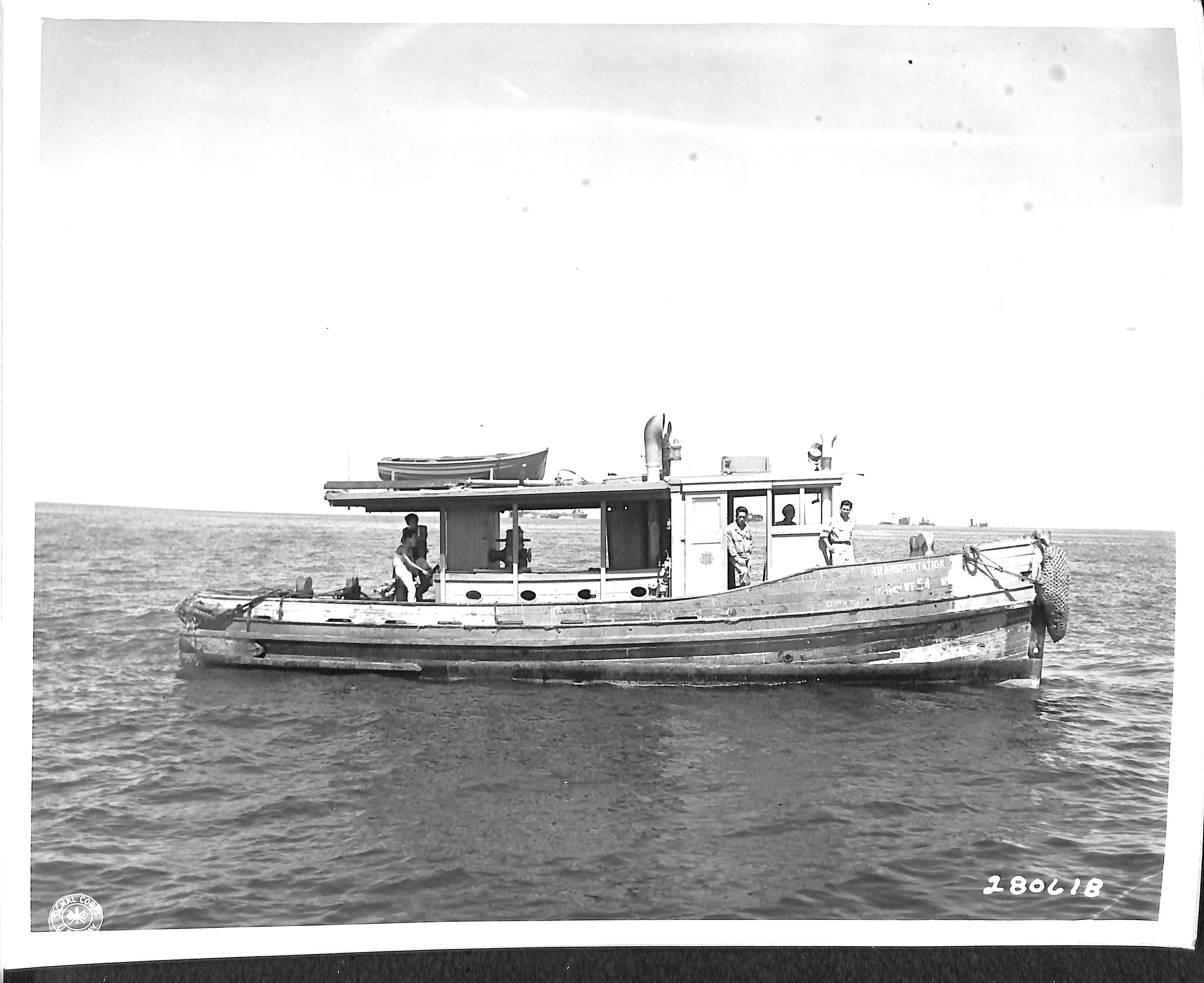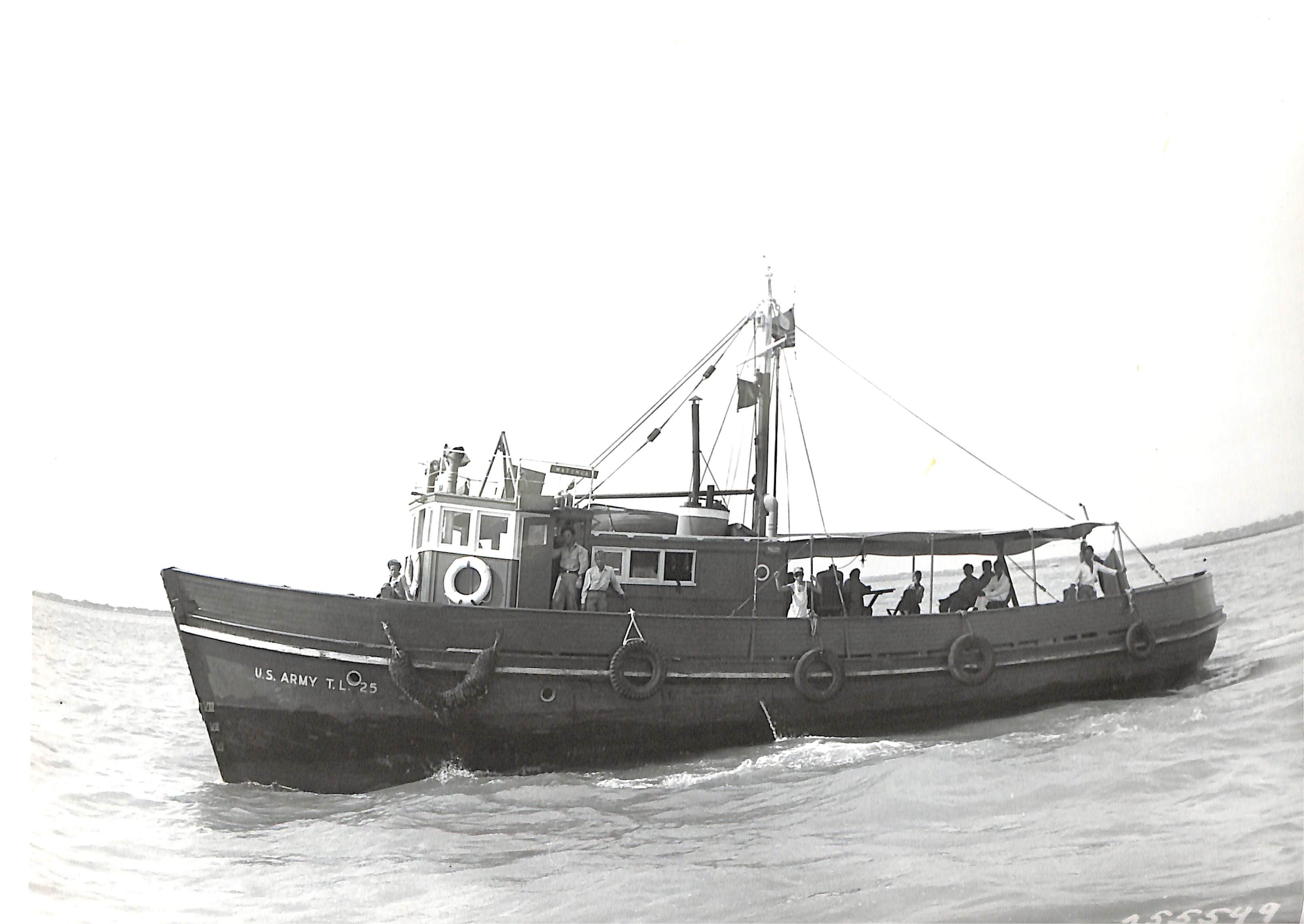 Towing barges and landing craft where no port facilities existed.